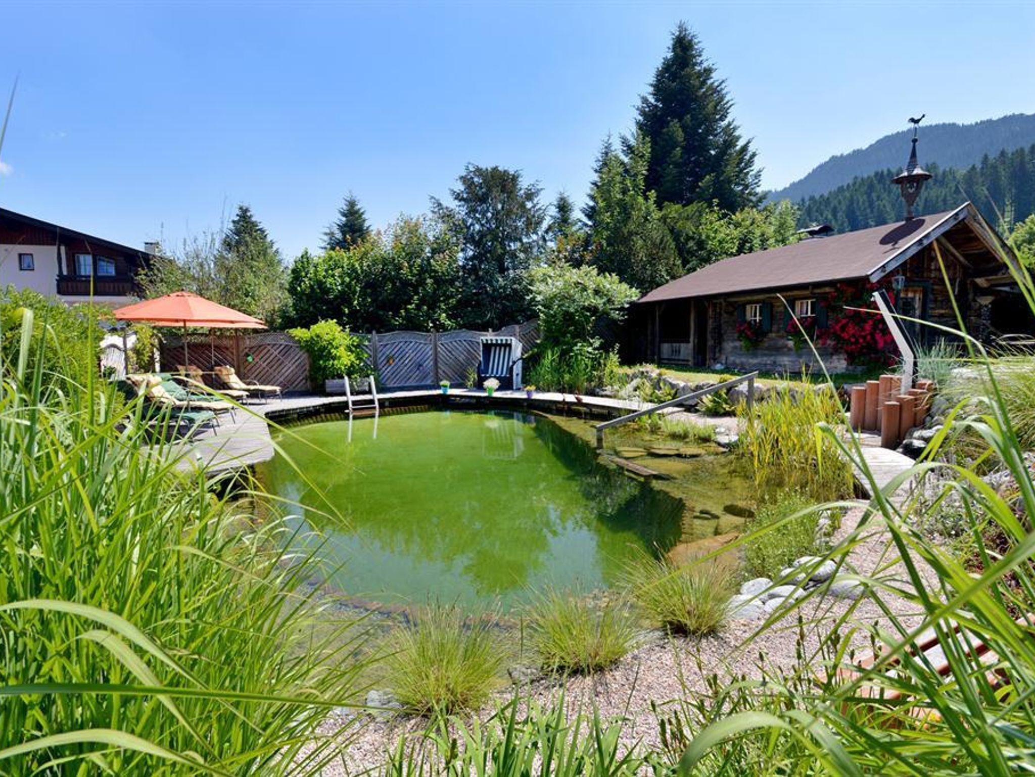 Zum Entspannen bieten wir Ihnen einen blühenden Garten mit Schwimmteich, sonniger Liegewiese und urigem Gartenhäuschen.