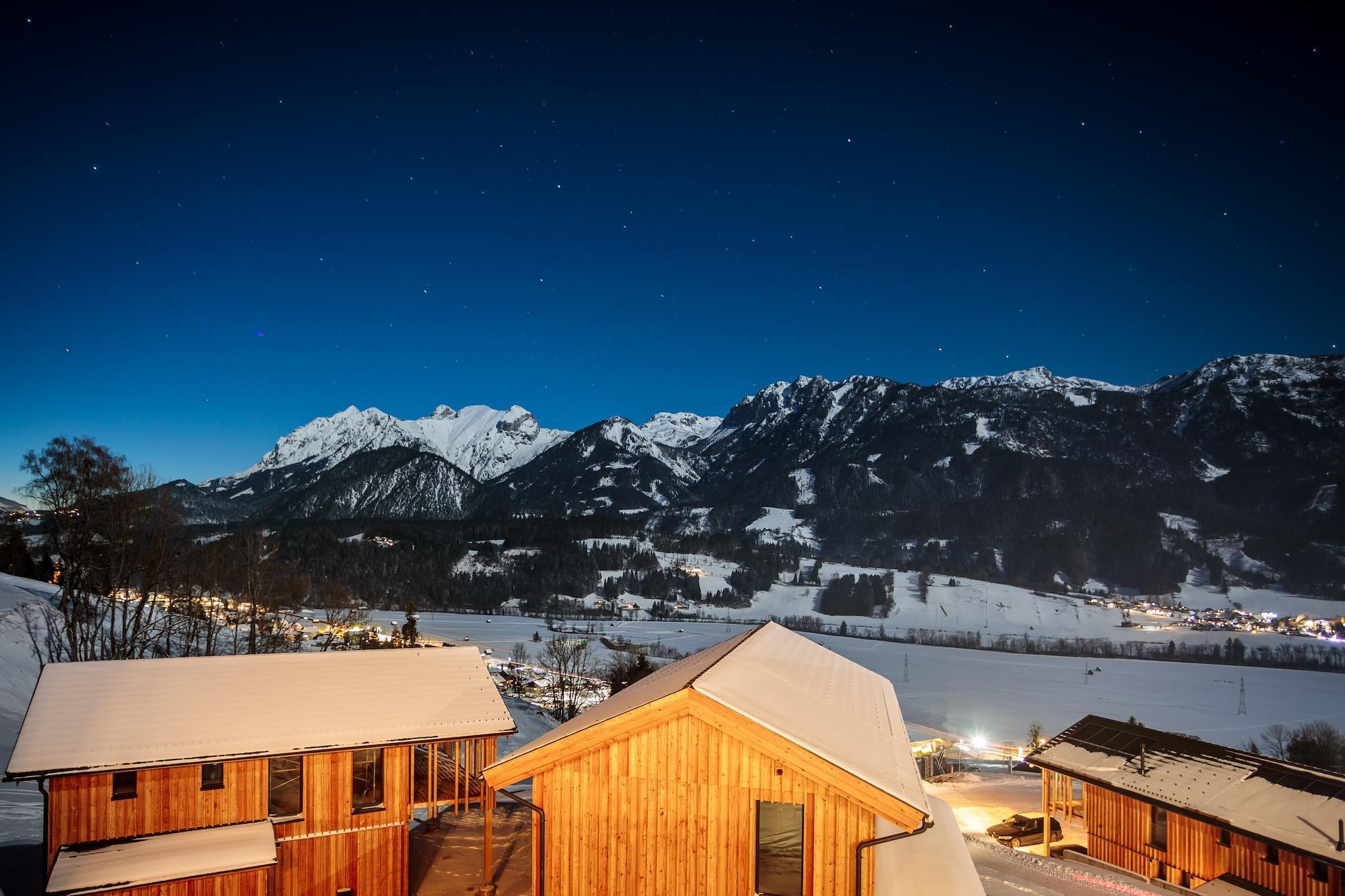 Velkommen til den luksuriøse 150 m² Superior Chalet, et perfekt tilflugtssted for op til 10 gæster. Denne rummelige hytte har fem elegant designede soveværelser og fem badeværelser, heraf fire en suite. Nyd ultimativ afslapning på badeværelset med en Bali-dampbruser og sauna, eller slap af i badekarret med en ekstra bruser. Der er bekvemt et separat toilet og hårtørrer. Chaletens højdepunkter omfatter en privat sauna og en 27°C varm pool på terrassen, perfekt til at slappe af og nyde den alpine atmosfære. Med direkte adgang til pister og private wellness-områder kan du også drage fordel af Schladming-Dachstein Summer Card (midten af maj til begyndelsen af november) og spise på kAlps Foodbar. Schladming-Dachstein-regionen byder på en bred vifte af aktiviteter året rundt. Om vinteren kan du udforske familieskiområder som Ski Fageralm og Ramsau, mens sommeren inviterer dig til naturskønne vandreture, alpine søer og spændende via ferratas. Deltag i guidede sneskovandringer, alpaca-vandringer og mere, med topbegivenheder som The Nightrace og Mid Europe, der forbedrer dit ophold. Hvert soveværelse er udstyret med komfortable boxspring-dobbeltsenge, der sikrer en god nats søvn. Det lyse, luftige opholdsområde, komplet med et hyggeligt gaskomfur, tilbyder en fantastisk udsigt over bjergene, hvilket forbedrer din afslapning efter en dag med eventyr. Det fuldt udstyrede køkken imødekommer alle dine kulinariske behov, med bestik og køkkengrej, en keramisk kogeplade, ovn, køleskab med fryser og opvaskemaskine. Yderligere faciliteter omfatter en brødrister, elkedel og både et filter og en Nespresso-kapselkaffemaskine. Et lille startsæt med vigtige forsyninger venter på dig ved ankomsten. Gratis Wi-Fi og satellit-tv er til rådighed for din bekvemmelighed. Bemærk venligst, at alle billeder er eksempelbilleder; hver hytte er unikt indrettet for at give en særegen oplevelse.