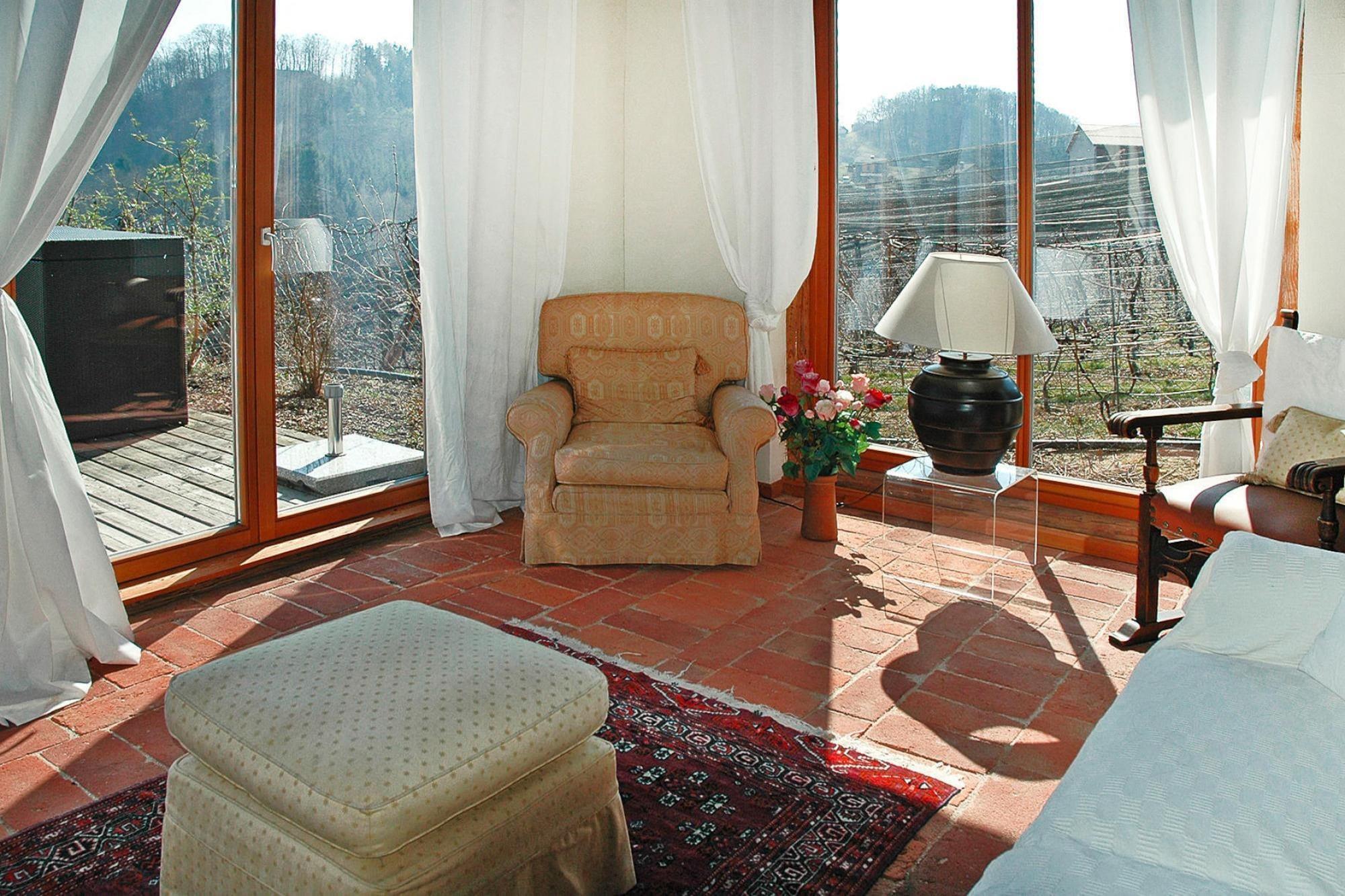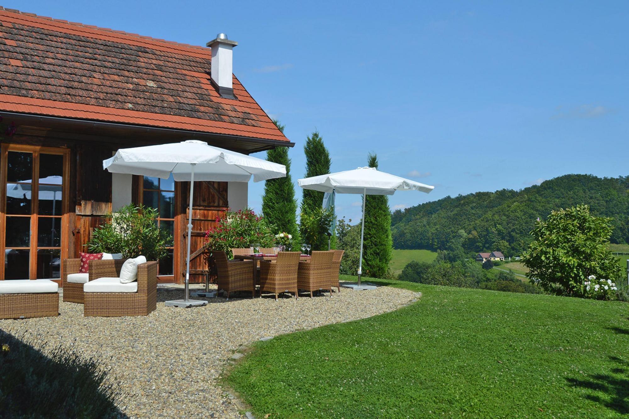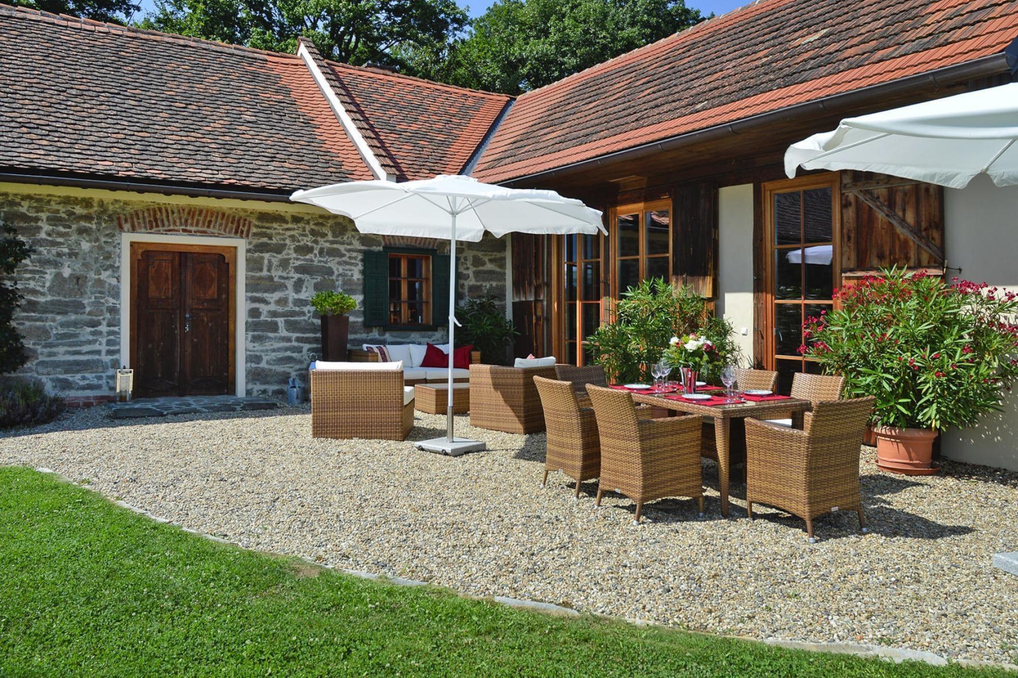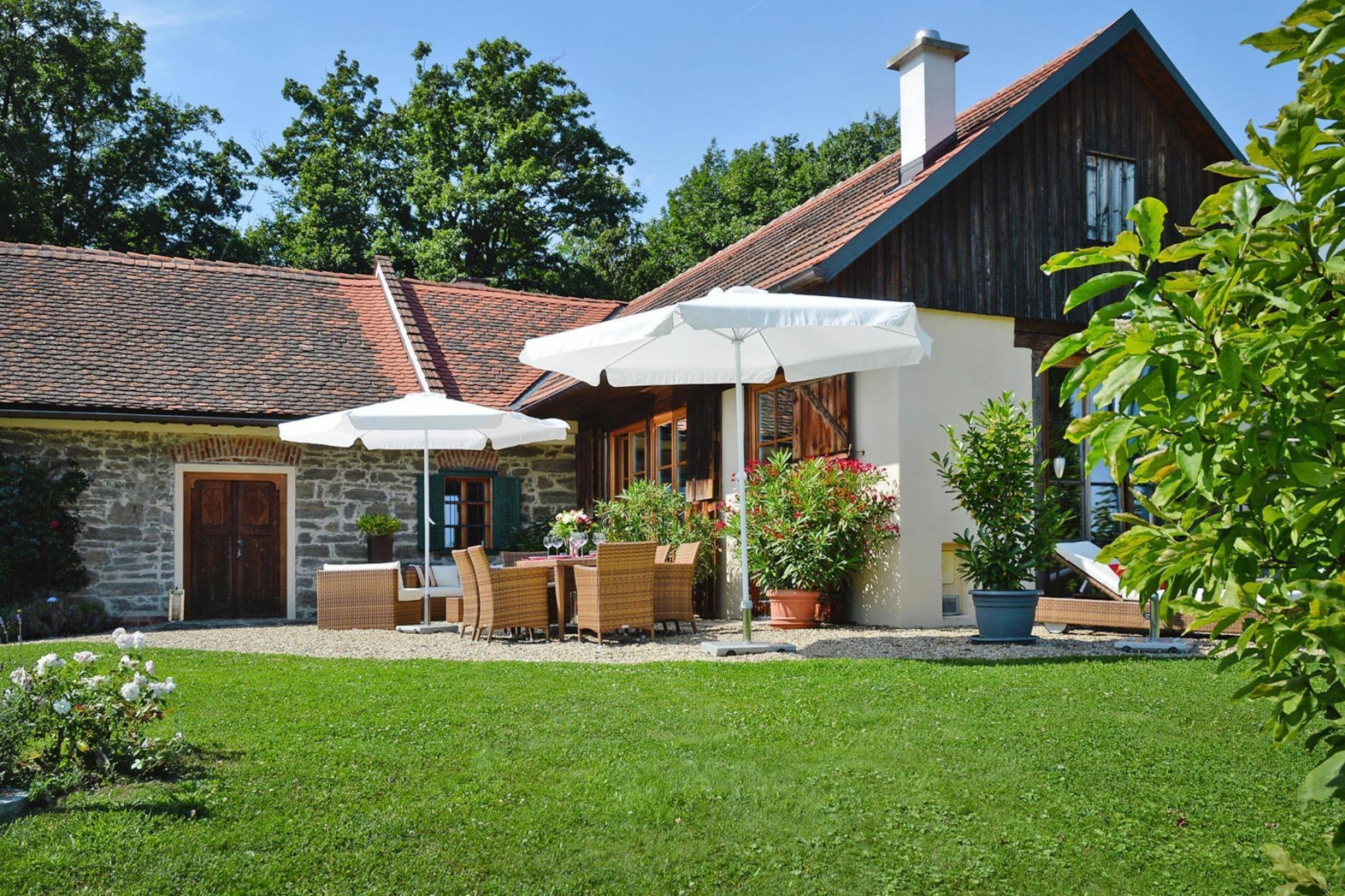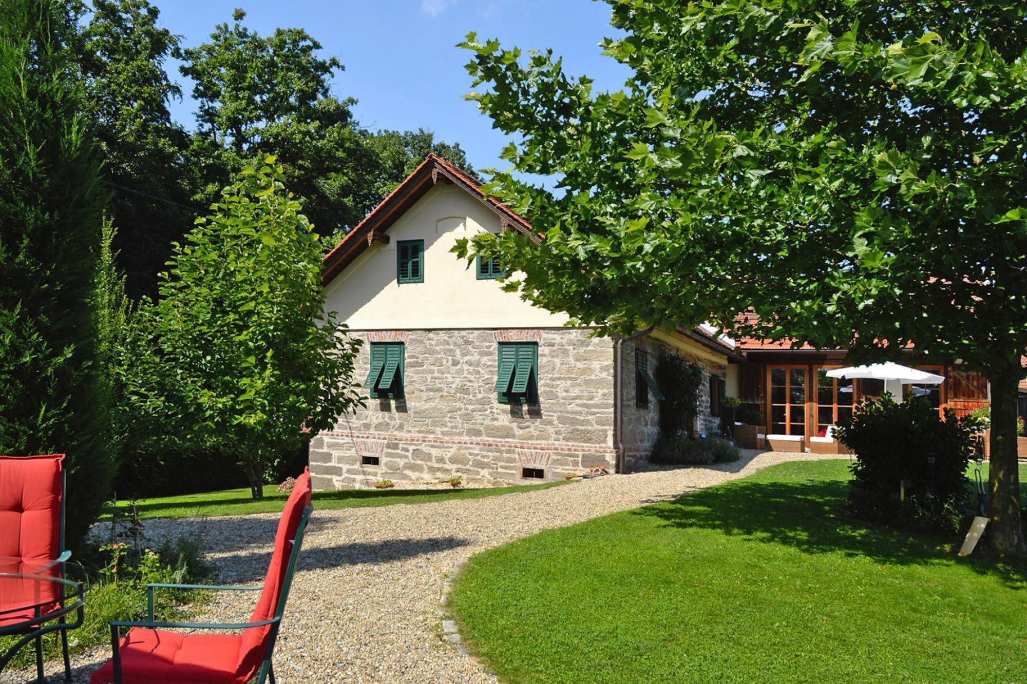 Den 250 år gamle hovedbygning (175 m²) er blevet grundigt revitaliseret. Dens gamle charme er blevet bevaret og er blevet kærligt møbleret med moderne teknologi og udsøgte antikviteter. To soveværelser med en-suite badeværelser (hvoraf det ene er åbent integreret, hver med badekar, bruser, toilet, hårtørrer, badekåber) kan komfortabelt rumme 4 personer. Den rummelige stue med pejs (satellit-tv, musikanlæg, bibliotek) er åben på 2 sider til terrassen og haven. Det fuldt udstyrede køkken og bryggers (vaskemaskine og tørretumbler) er åbne for hinanden. Endvidere indgangsparti og gæstetoilet.Det 75 kvadratmeter store, hemslignende udhus, "Presshaus", er helt i træ og byder på en smuk panoramaudsigt til to sider gennem de høje vinduer. Det store gavlvindue giver natudsigt til stjernehimlen i det sydlige Steiermark Midtpunktet er en cirka hundrede år gammel vinpresse, på hvis pressegulv en dobbeltseng er smukt integreret Med endnu et badeværelse med regn bruser, toilet og Der er nok plads til en anden 2 people.A Daikin klimaanlæg giver køling om sommeren og fungerer som opvarmning i winter.A sovesofa plads til 1 ekstra barnets tarv hyggelig have med swimmingpool ( 9 x 3 m, biologisk salt rengøring) og solen terrasse forbinder de to bygninger og skaber en fredelig atmosfære. Detaljer: Forbrugsbaserede energiomkostninger, sengelinned, håndklæder, slutrengøring, WiFi-velkomstpakke, byskat Aktiviteter i nærheden: Det maleriske bakkede landskab af vulkansk oprindelse med dets skove, vinmarker og frugtplantager er ideelt til lange gåture. Oplev de mange paladser og slotte langs Schlösserstraße, som betragtes som udfordrende vidner fra en svunden tid. Flere golfbaner såsom Traminergolf Klöch (ca. 20 km) eller Thermengolf Loipe