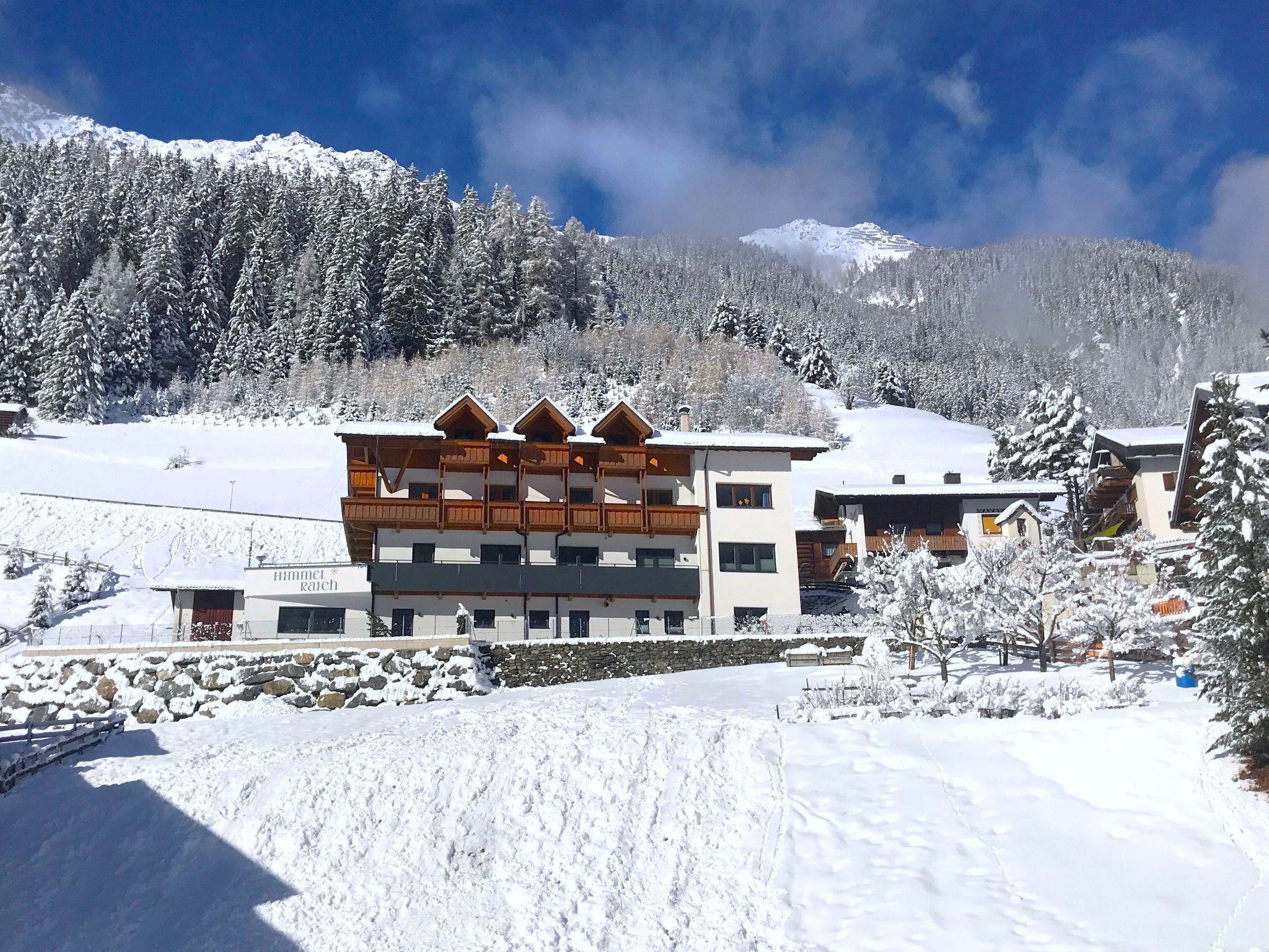 Large, modern apartment block "Himmelraich". In the district of Grasse, 1 km from the centre of Feichten, in an elevated position on a slope, 20 km from the skiing area. In the house: reception, breakfast room, lounge, storage room for bicycles, sun terrace, storage room for skis, central heating system, ski boot dryer. Breakfast on request (extra). Parking at the house. Supermarket 1 km, restaurant 200 m, bus stop "Kaunertal Grasse" 350 m, railway station "Ötztal Bahnhof" 39.2 km, indoor swimming pool 1 km. Sports centre 1 km, walking paths from the house 200 m, skisport facilities 12 km, ski rental 1 km, ski bus stop 300 m, sled run 1 km, cross country ski track 300 m. Well-known ski regions can easily be reached: Kaunertaler Gletscher 20 km, Serfaus-Fiss 15 km, Fendels 11 km. Well-known lakes can easily be reached: Badesee Ried 12 km. Hiking paths: Naturpark Kaunergrat, Verpeil 18 km. Please note: ski bus (free of charge). Free ski bus service to the ski region Kaunertaler Gletscher und Ried (Fendels). Please note: the owner lives in the same residence.
