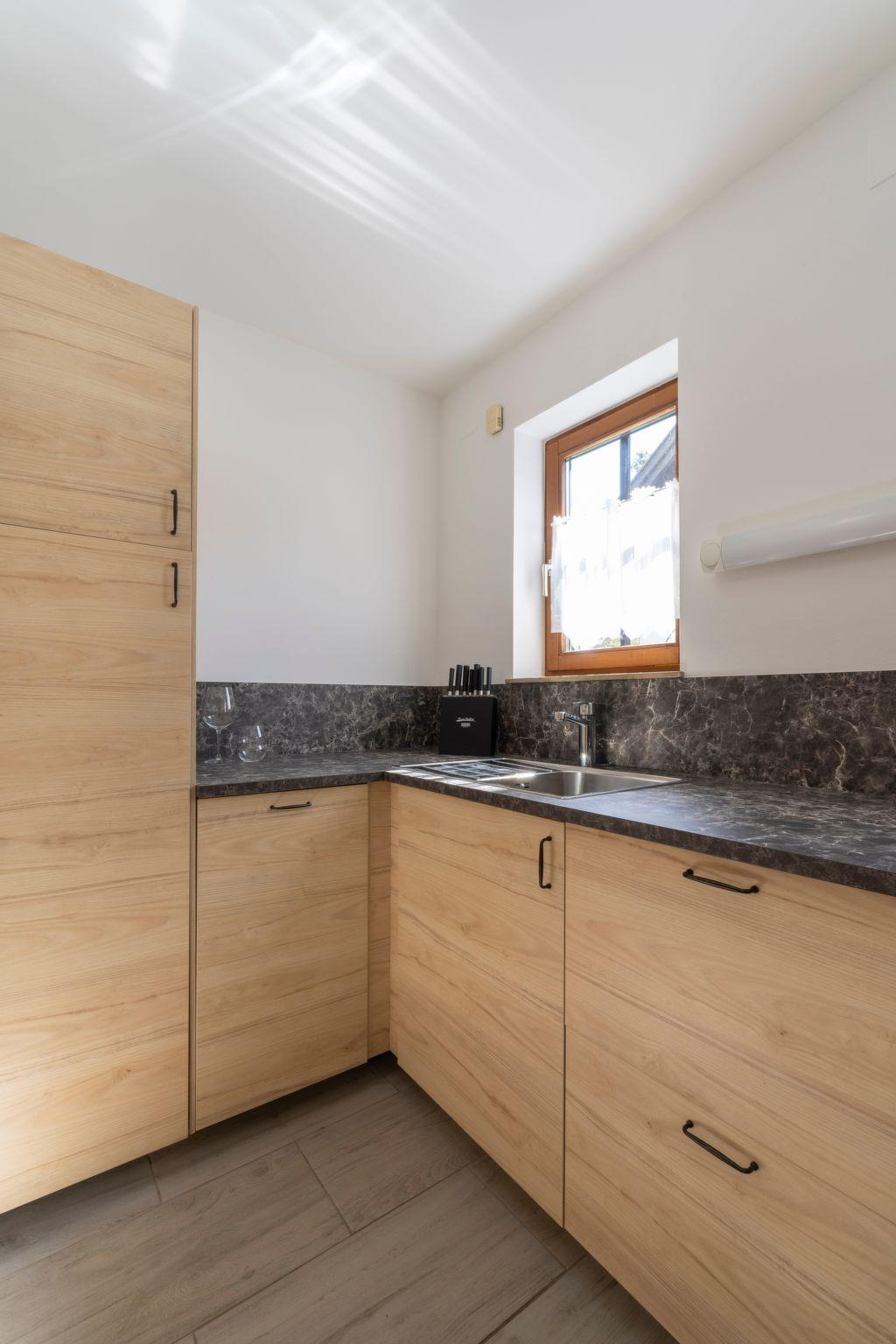 The interior of the holiday home offers modern comfort and cosiness for up to 6 people. On the ground floor, a cosy living and dining room with a warming pellet stove and access to WiFi and cable TV invites you to spend cosy hours. A separate kitchen with high-quality built-in furniture and full equipment including an electric cooker, fridge-freezer and dishwasher leaves nothing to be desired. Upstairs you will find three separate bedrooms - two with double beds and one with bunk beds - as well as a modern bathroom with shower.