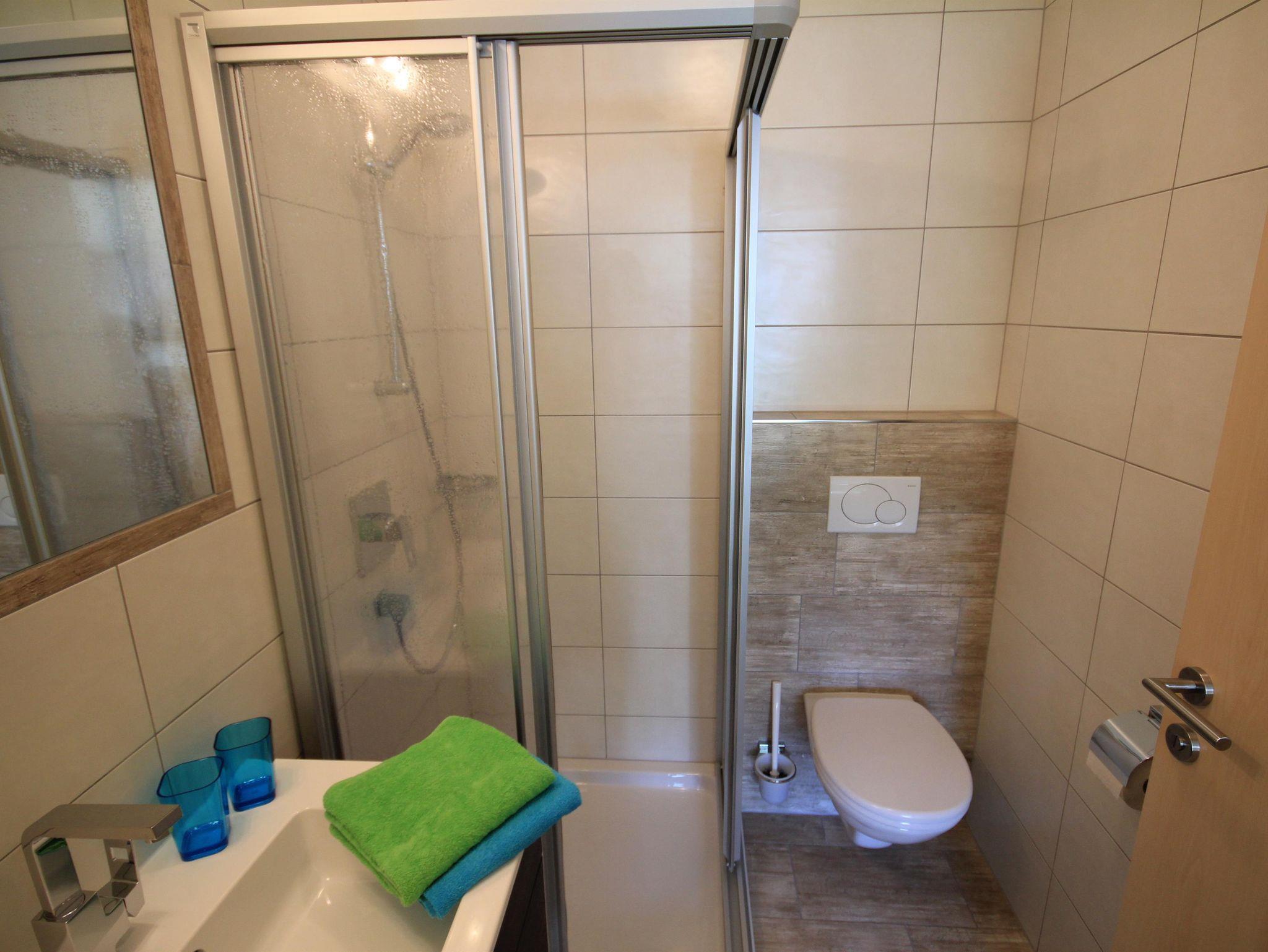 Das Appartement verfügt über zwei getrennte Schlafzimmer. Jeder Schlafraum ist seperat mit Dusche und WC ausgestattet. Zusätzlich bietet die helle Wohnküche mit ausziehbarer Couch Platz für weitere Schlafplätze.