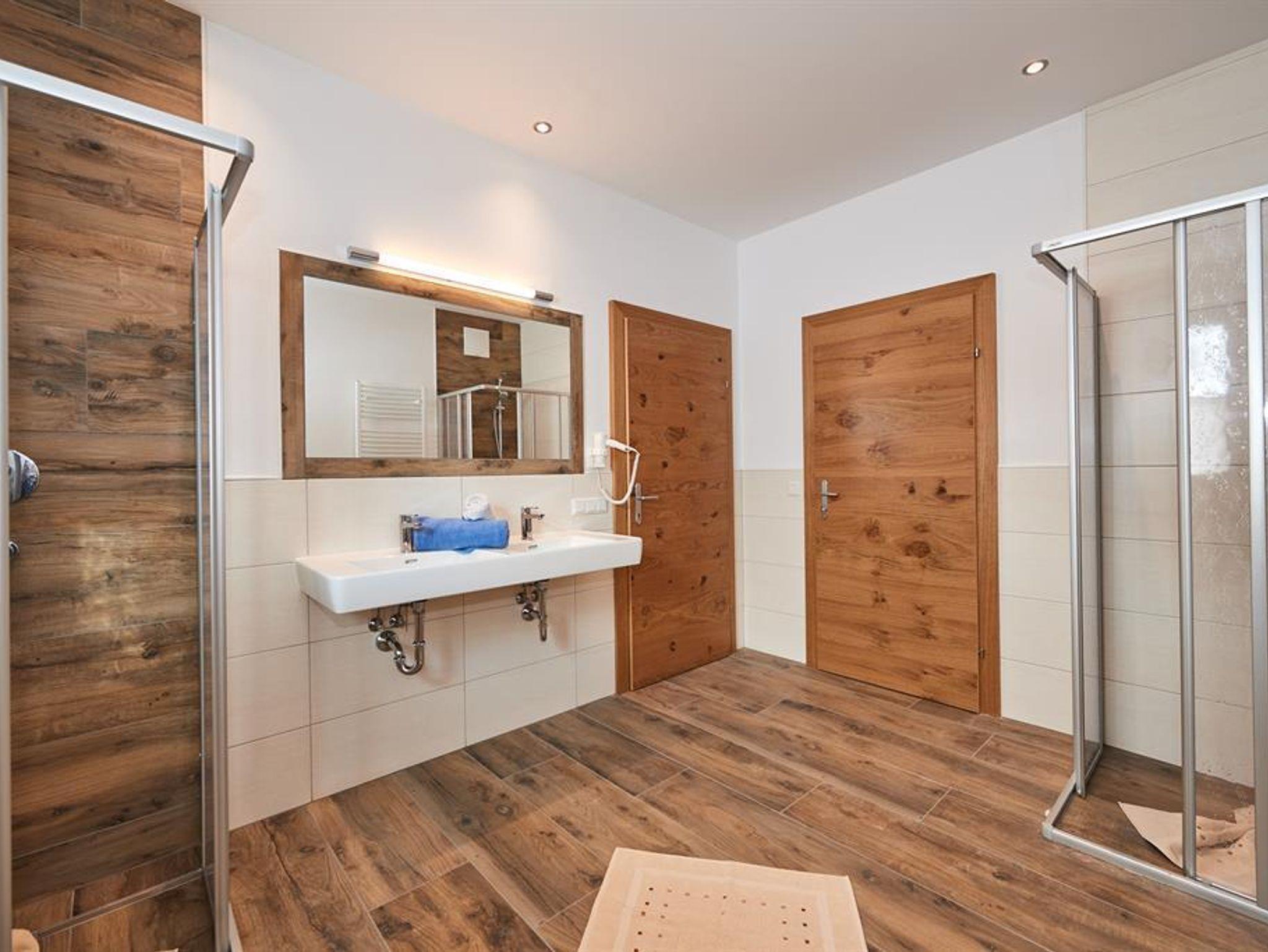 • Bad mit Doppeldusche, Doppelwaschbecken, WC & Fön