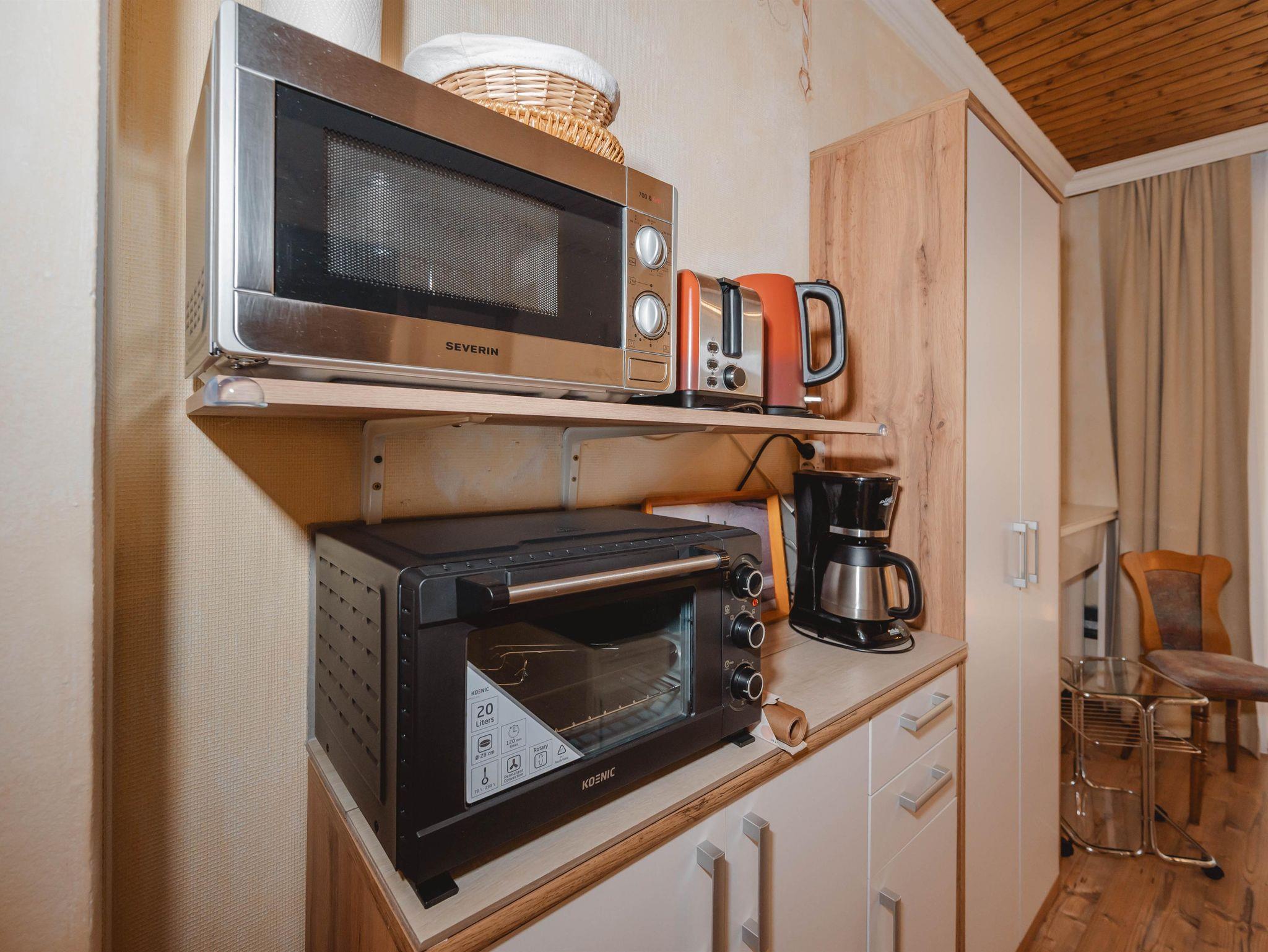 Küche m. Geschirrspüler, Mikrowelle, Kaffeemaschine, Wasserkocher, etc.
