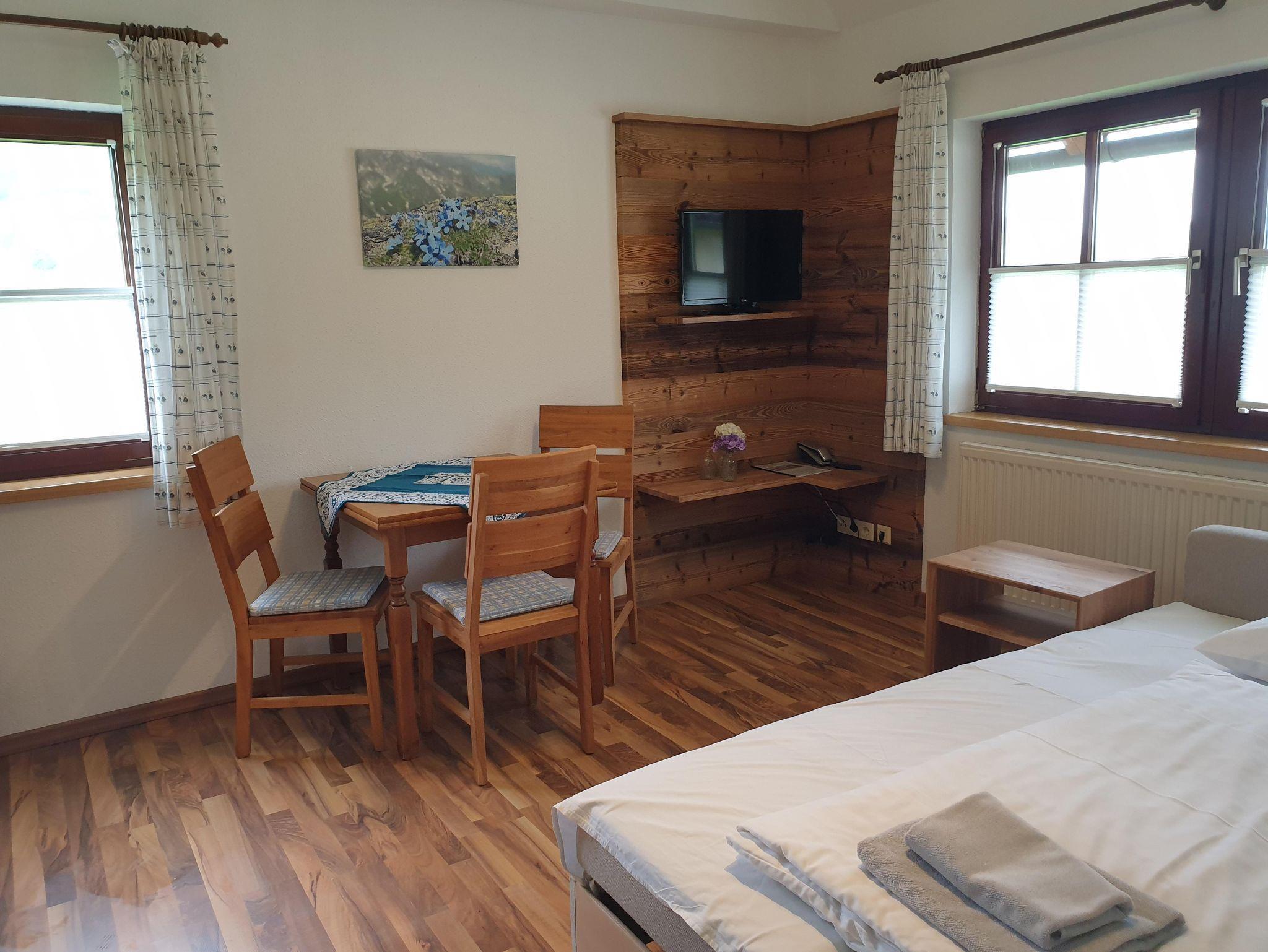 Komfortzimmer Sonnenblume (104/105) Komfortables ruhiges Doppelzimmer mit DU/WC, Flatscreen-Sat-TV, Kühlschrank, Telefon, gratis W-Lan im Zimmer, Haartrockner und Hotelsafe, Blick in das westliche Göriachtal. Auf Wunsch Halbpension mit Menüwahl.