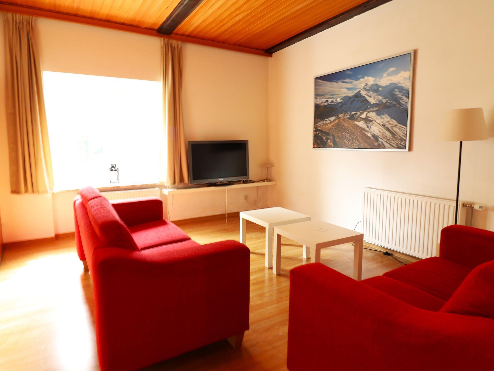 Familienstudio mit ein Schlafzimmer. Eine Dusche mit WC, Wohnbereich und eine Kuche mit sitzecke.