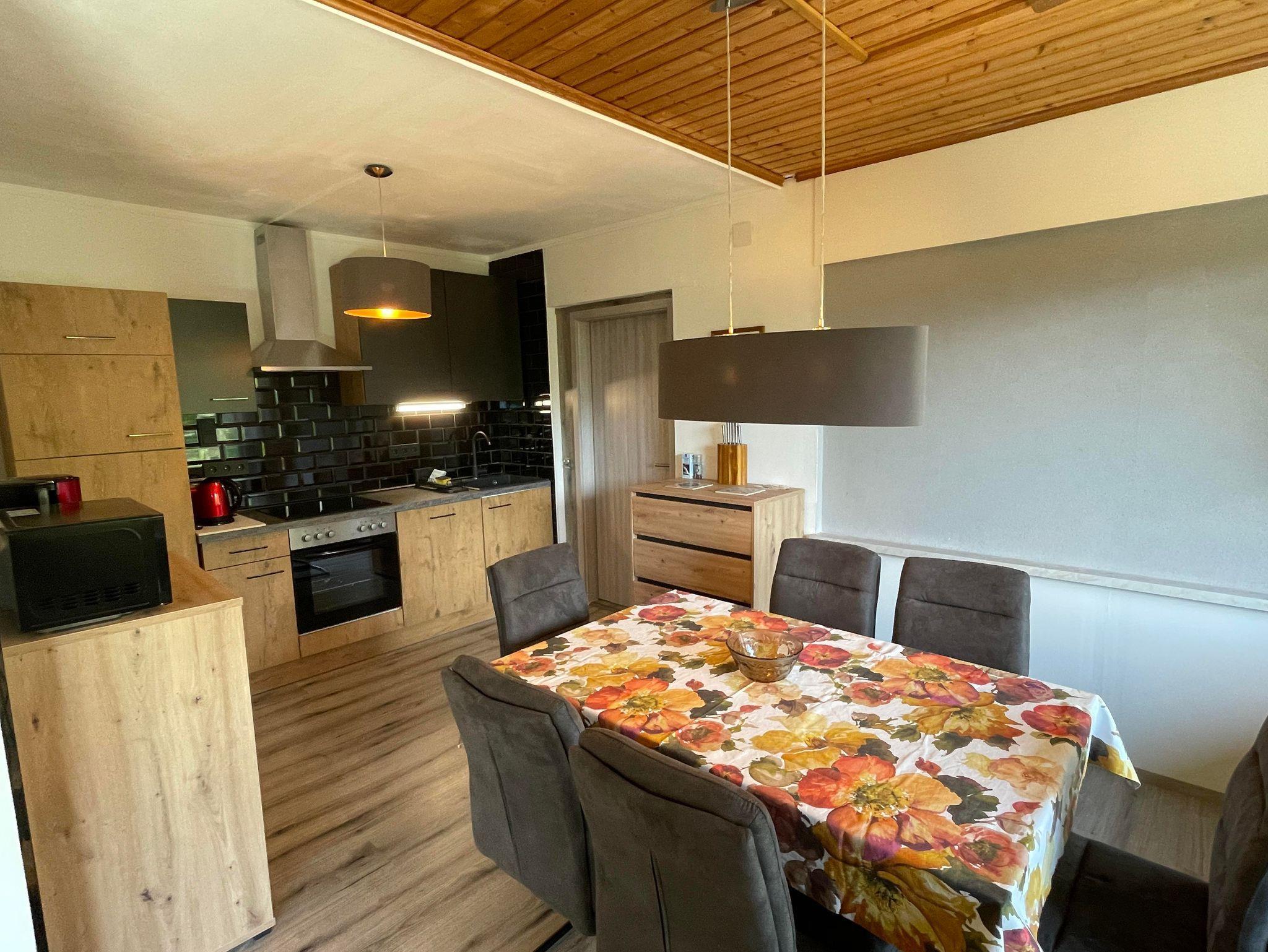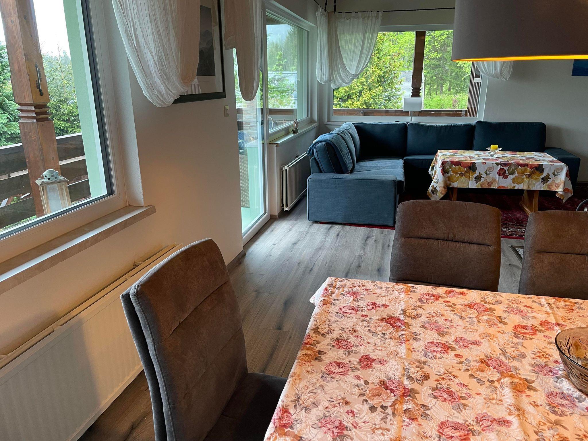 Appartement Wellington: es ist das unterste Appartement und verfügt über einen separaten Eingang. Es bietet zwei Schlafzimmer, ein Duschbad, einen Wohnraum mit Esstisch, Küchenzeile, Sofa, Fernseher und einen Holzofen. Die Küchenzeile ist voll ausgestattet mit Kühl-Gefrierkombination, Backofen, Toaster, Wasserkocher, Mikrowelle, Kaffeemaschine und Geschirrspüler. Durch den Wohnraum gelangt man in das zweite Schlafzimmer (zwei Einzelbetten) und von dort auf die Terrasse. Das Appartement ist zusätzlich zum separaten Eingang stufenlos durch den Ski- und Fahrradkeller zu erreichen. Es ist jedoch nicht behindertengerecht (steile Straße). Das gesamte Appartement ist mit Laminat/Fliesen ausgestattet.
