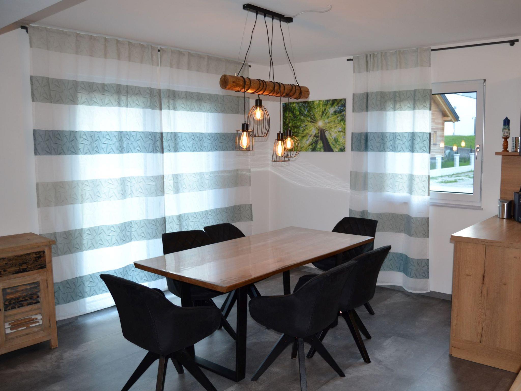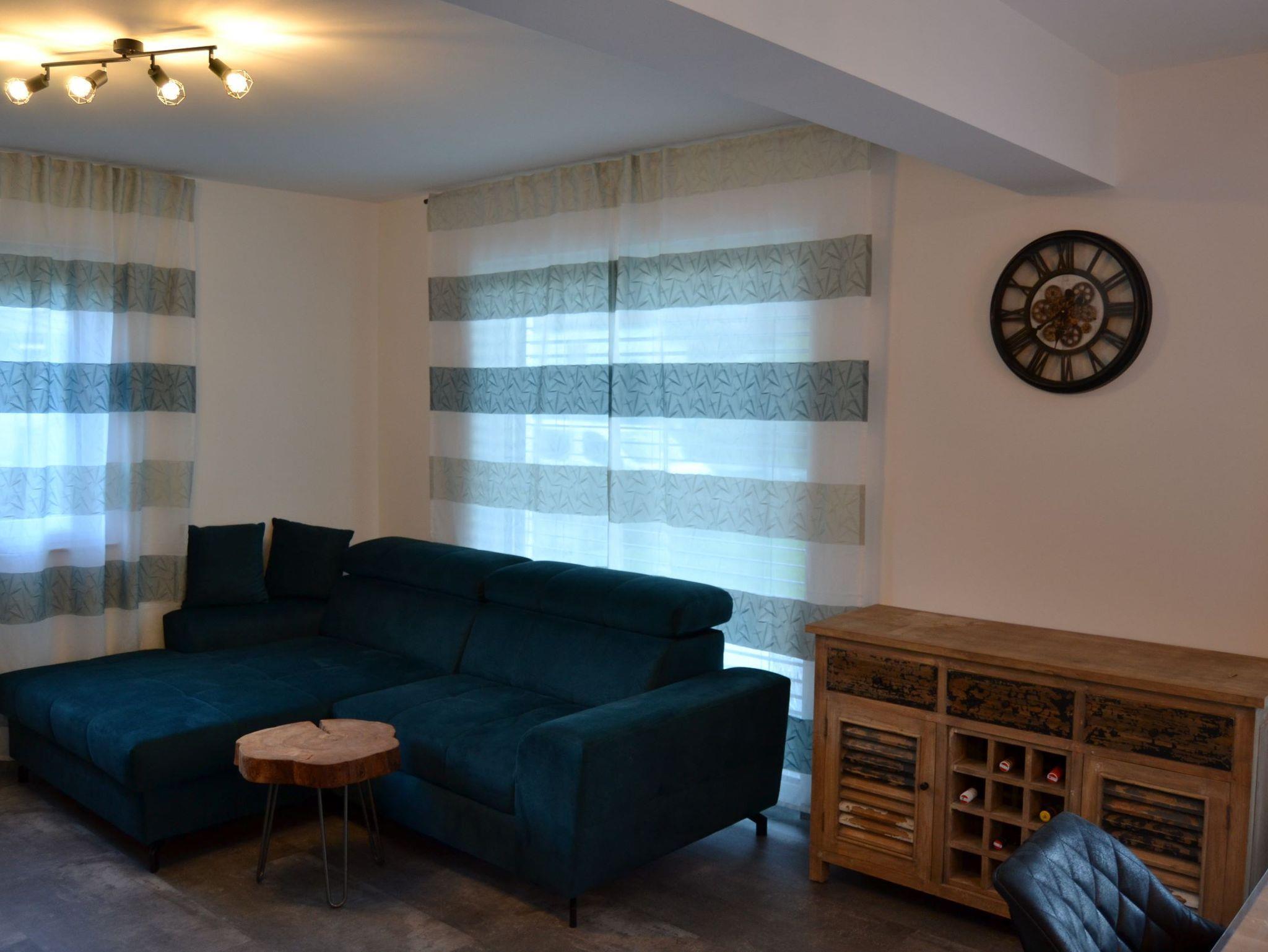 Im Erdgeschoss befindet sich ein geräumiges Vorzimmer mit genügend Stauraum für Jacken und Schuhe, ein kleines Badezimmer mit WC und Dusche, sowie ein Wohn-/Essbereich mit ausziehbarer Schlafcouch, Flachbild-Sat-TV, Bluetooth Soundbar und eine voll ausgestattete Küche.