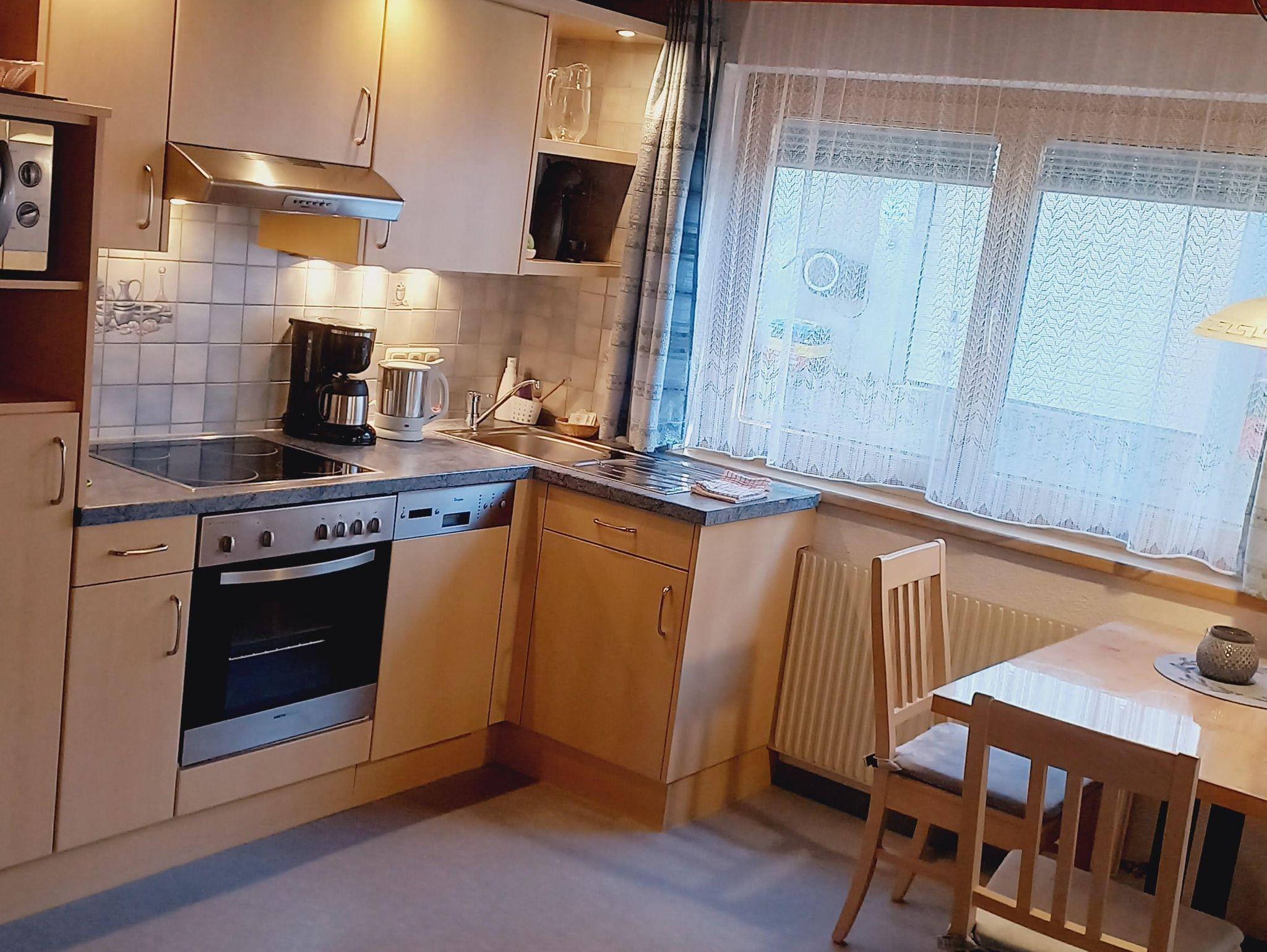 (70m2) 3 Schlafzimmer (3 DZ), Elektroherd mit 4 Platten (Ceran), Backofen, Mikro, Geschirrspüler, Kühl/Gefrierschrank, Kaffeemaschine, Toaster, Mixer, Wasserkocher, KABEL-TV, WIFI-EMPFANG, 1 Dusche / 1 WC, Küche, Süd-Balkon