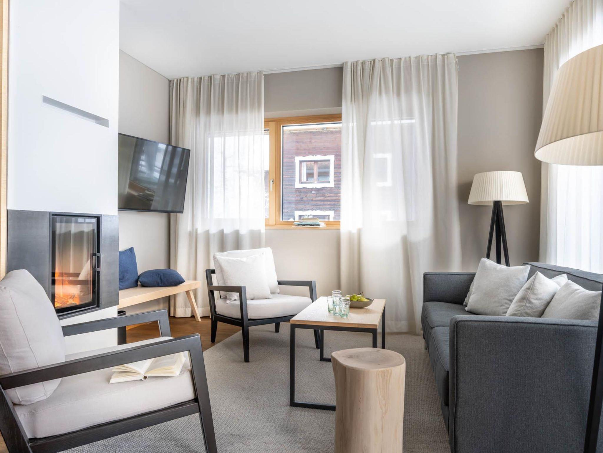 Appartements mit Luxus-Charakter. Inmitten der beeindruckenden Alpenkulisse befinden sich direkt an der beschaulichen Gaschurner Dorfstraße zwischen Kirche und Sporthotel Silvretta Montafon unsere Sporthotel Chalets****.