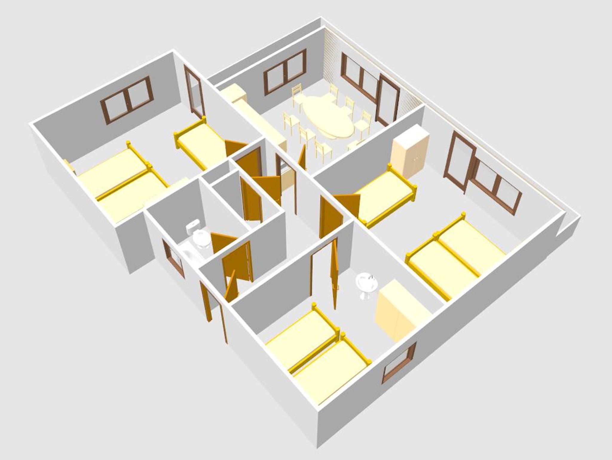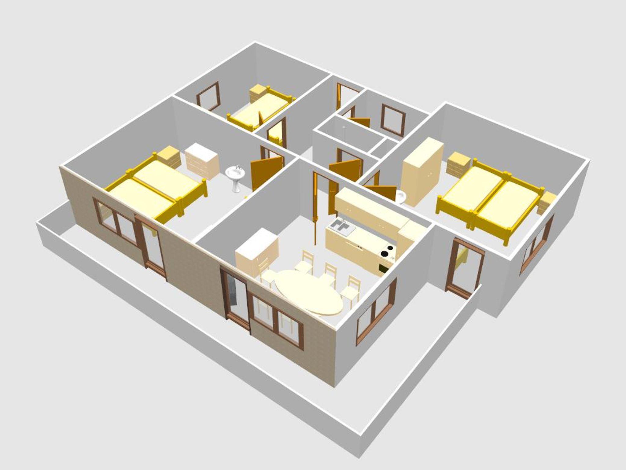 Die Wohnung besteht aus zwei Schlafzimmer mit je einem Doppelbett und einem Zusatzbett,