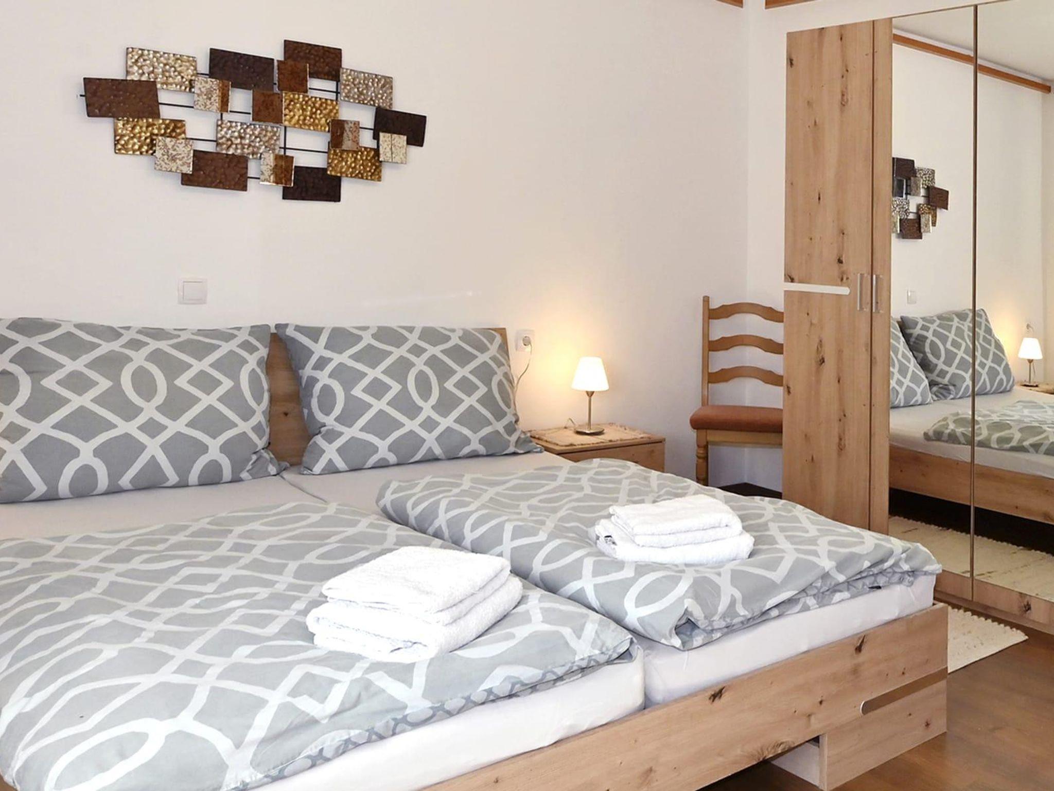 Die Ferienwohnung ist ausgestattet mit einem Schlafzimmer mit Doppelbett und einem Klappbett, Badezimmer mit Dusche und WC, Wohn- Esszimmer mit Ausziehcouch 120cm auf 200cm und einer Küche. Die Küche ist komplett ausgestattet mit einem Geschirrspüler, Kühlschrank, Vierplattenherd und Backrohr, Mikrowelle und Kaffeemaschine.