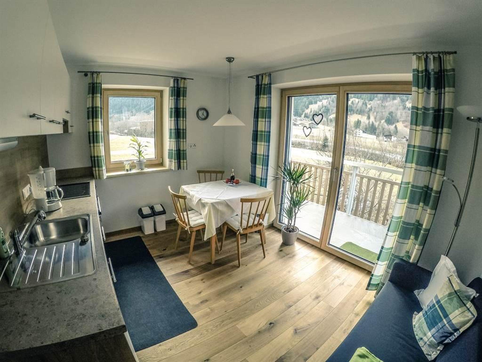 Die 40 Quadratmeter große Ferienwohnung Enzian ist geeignet für 2-3 Personen. Sie verfügt über eine moderne Wohnküche mit Geschirrspüler, Backofen, Ceranfeld-Herd, Kühlschrank sowie einem Ess- und Sitzbereich. Weiters gibt es ein Schlafzimmer mit Doppelbett und einem Zusatzbett. Das Badezimmer ist mit Dusche, WC, Handtuchtrockner und Haarföhn ausgestattet. Ebenfalls gibt es TV und Gratis-Wlan.