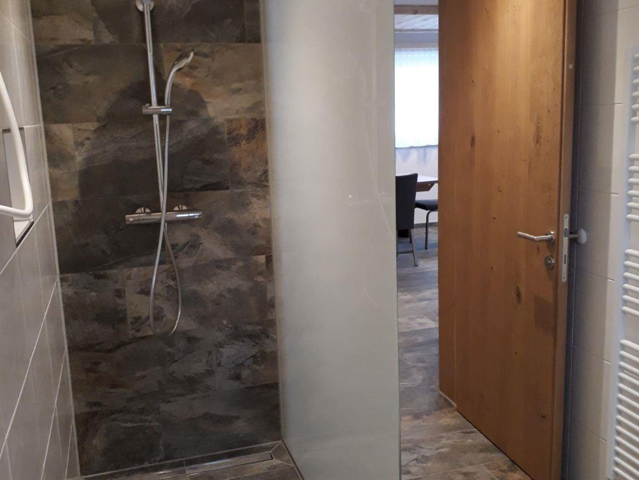 Neubauwohnung:(ebenerdig) komplett ausgestattete Wohnküche mit einer ausziehbarer Couch vollautomatischen Sodaanlage , Kaffeemaschine 1 WC 1 Dusche 1 Schlafzimmer und ein kleiner Balkon Wohnfläche ca. 55 m²