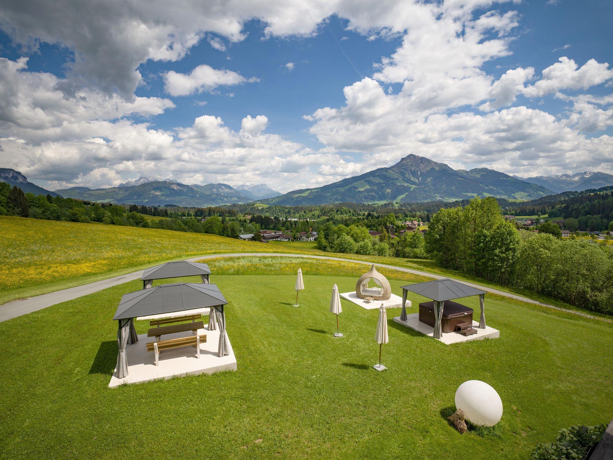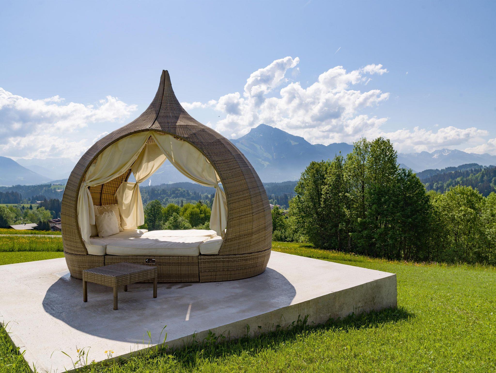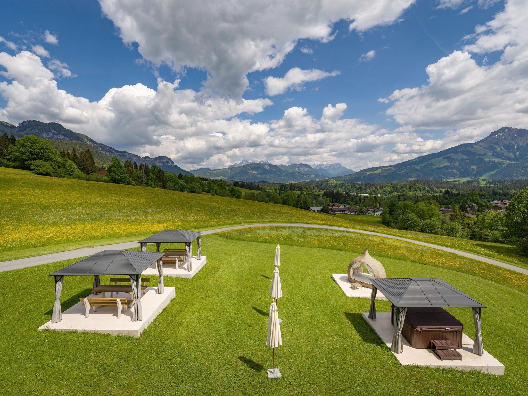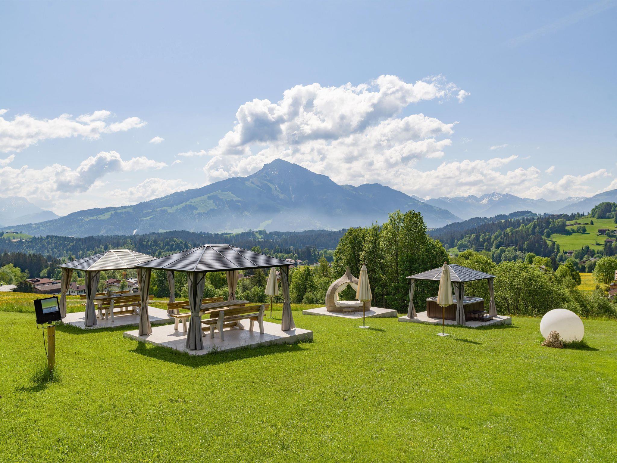Für vollkommene Entspannung sorgt der ganzjährig kostenfrei nutzbare Whirlpool auf der weitläufigen Wellnesswiese. Nach einem aktiven Tag auf den Pisten oder den Wanderwegen ist das warme, sprudelnde Wasser – im Winter wie im Sommer – der ideale Ort zum Durchatmen, die Muskeln zu lockern und die umliegende Berglandschaft zu bewundern. In den Pavillons und auf den bequemen Liegen können Sie die Sonne genießen und die wohltuende Stille erleben, während die Kleinsten auf dem großzügigen Areal mit Fußball- und Volleyballfeldern sowie weiteren Spielgeräten nach Herzenslust toben können.