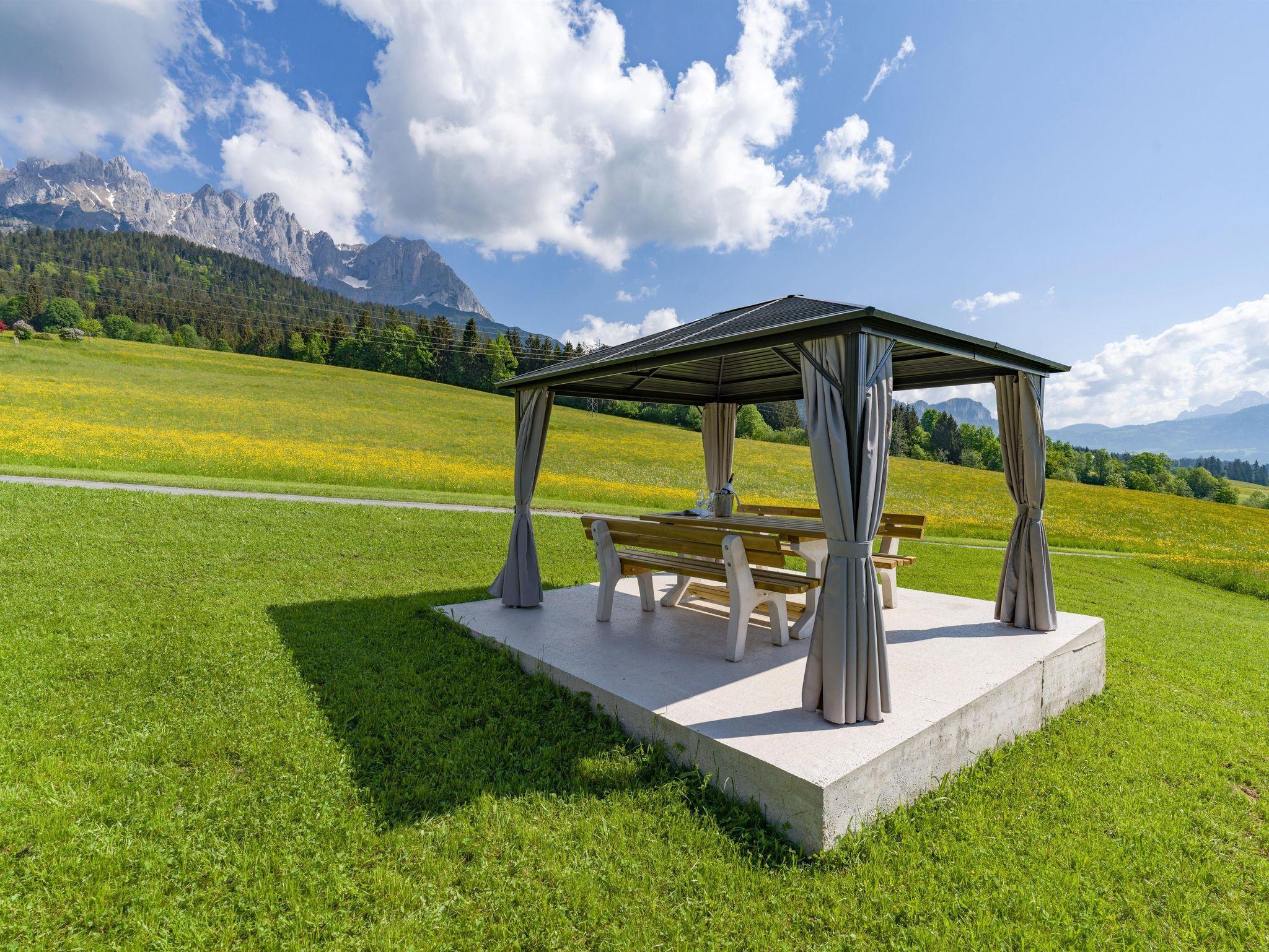 Das Appartement Weitblick thront in idyllischer Alleinlage auf einem Sonnenplateau oberhalb des Goinger Badesees – ein Ort der Stille und Entspannung, an dem Sie die ungestörte Ruhe der Bergwelt in vollen Zügen genießen können. Umgeben von majestätischen Gipfeln erwartet Sie ein Panorama, das im Norden vom Wilden Kaiser, im Süden vom Kitzbüheler Horn und im Osten von den Steinbergen eingerahmt wird – ein traumhafter Rückzugsort, der die Natur in ihrer reinsten Form erlebbar macht.