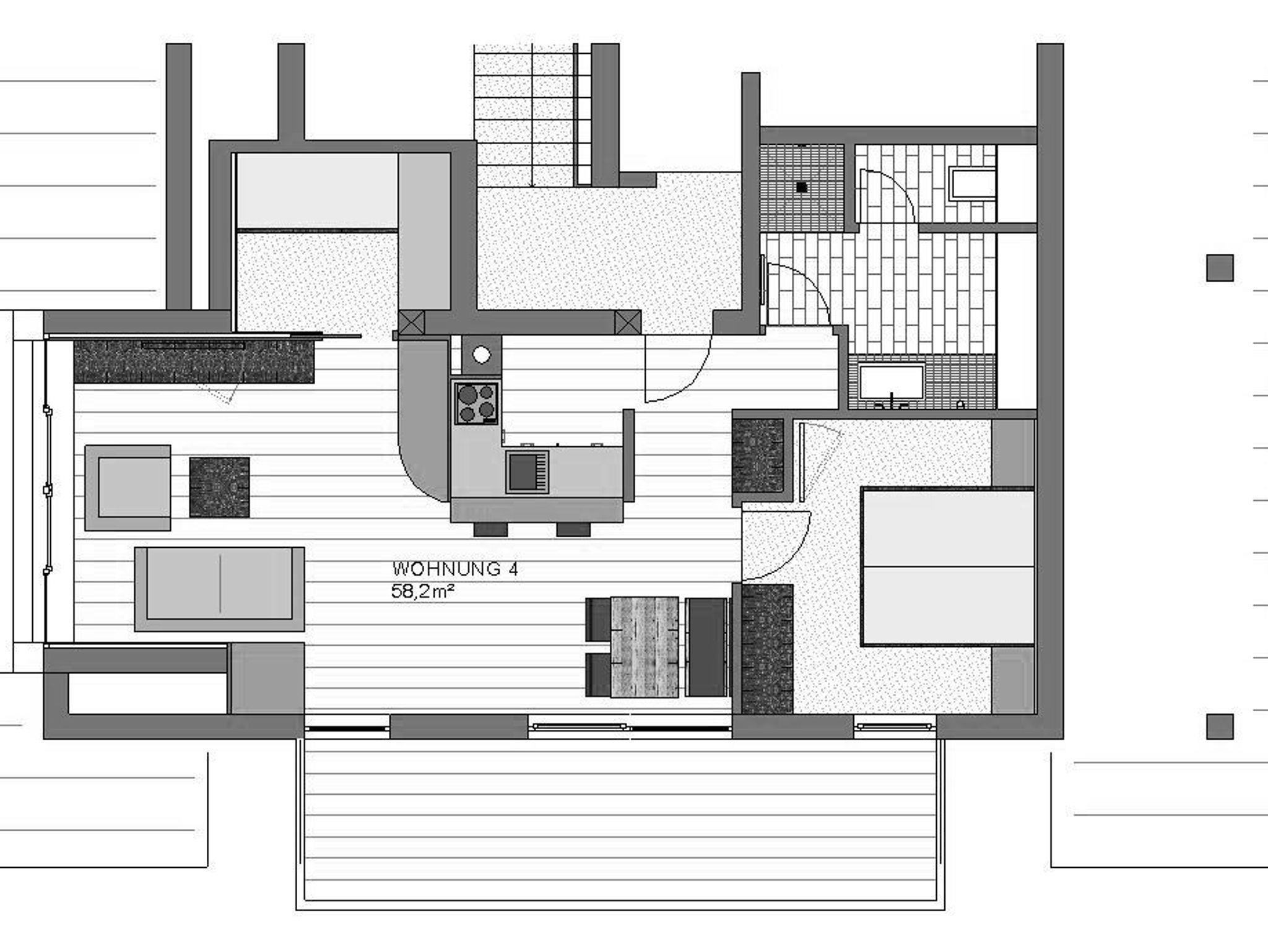Einzigartige 58 m², lichtdurchflutet von früh bis abends, großzügiger Südbalkon (ca. 16 m²), kuscheliges Schlafzimmer, kleines Kinderzimmer, Badezimmer mit geräumiger Dusche, Kosmetikspiegel und Haarfön, separates WC, liebevoll eingerichtete kleine Küche mit Spülmaschine, Mikro, Kaffeemaschine usw.