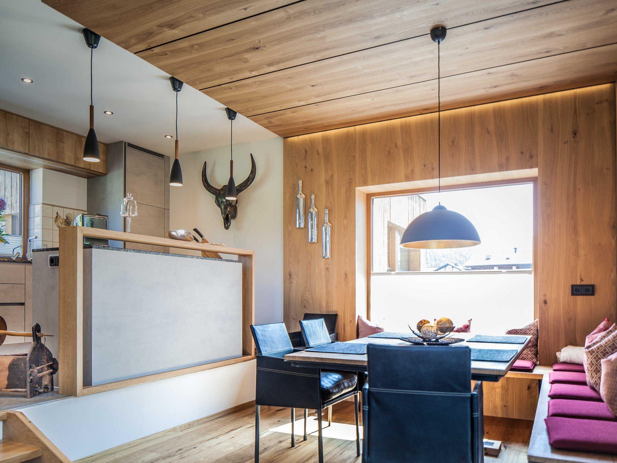 Chalet mit ca. 130 m2 für 2 - 8 Personen, 2 Schlafzimmer, Schlafsofa, 2 Etagenbetten, 2 Regenduschen, Badewanne und eigener Sauna, vollausgestattete Küche mit Esszimmer, Wohnbereich mit Kaminofen und Terrasse sowie Dachterrasse, Vorraum für Skier, Fahrräder mit E-bike Ladestation, Schuhtrockner, E-Auto Ladestation