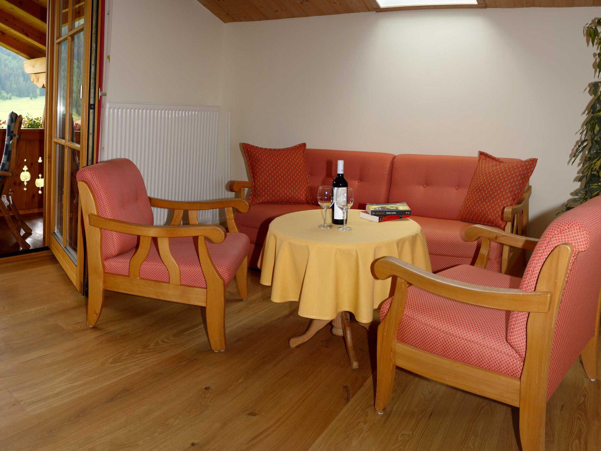Wohnzimmer mit Tiroler Stube und gemütlicher Sitzgarnitur. Flachbildfernseher mit WLAN, WLAN, Radio und Safe. Neue Küche mit E-Herd mit Backrohr, Spülmaschine, Toaster, Kaffeemaschine, Wasserkocher und Mikrowelle.