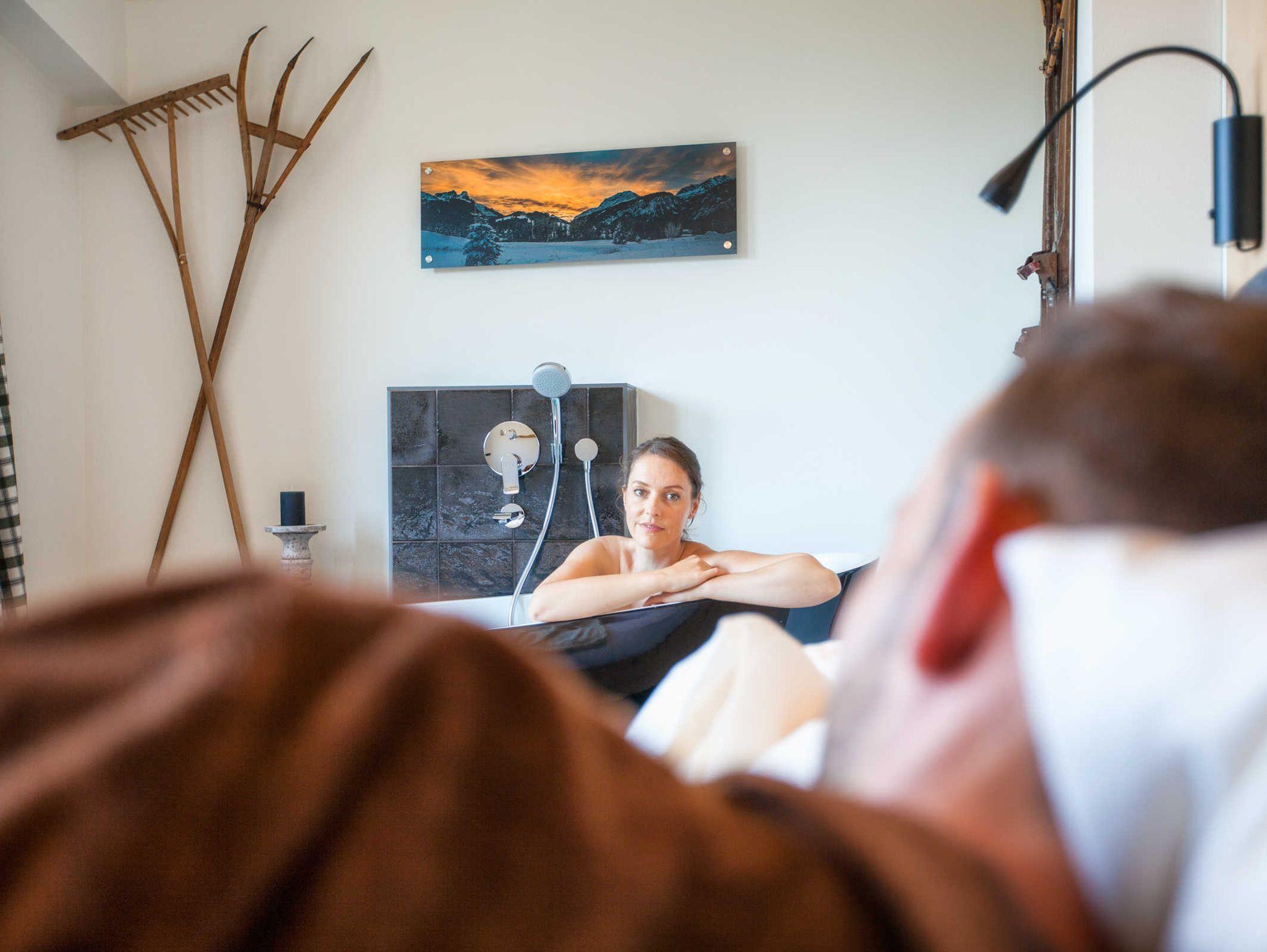 Unsere Chalets verfügen über eine modern eingerichtete Küche. Doch wenn der Herd einmal kalt bleiben soll, kochen wir gerne für Sie auf: Wählen Sie aus unser kleinen, aber sehr feinen Speisekarte und wir bringen es gerne zu Ihnen ins Chalet. Es soll Ihnen an nichts fehlen. Teilen Sie uns Ihre Wünsche einfach via Tablet im Chalet mit und wir erledigen Ihren Einkauf. Unsere gute Fee erledigt für Sie den Rest.