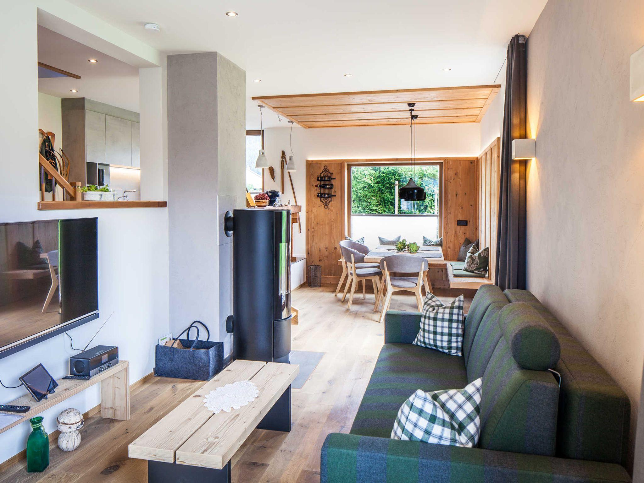 Chalet mit ca. 130 m2 für 2 - 4 Personen, mit voll ausgestatteter Küche, Esszimmer, Wohnbereich mit Kaminofen u. Terrasse, Schlafzimmer mit 2 Regenduschen, Badewanne und eigener Sauna mit Loggia