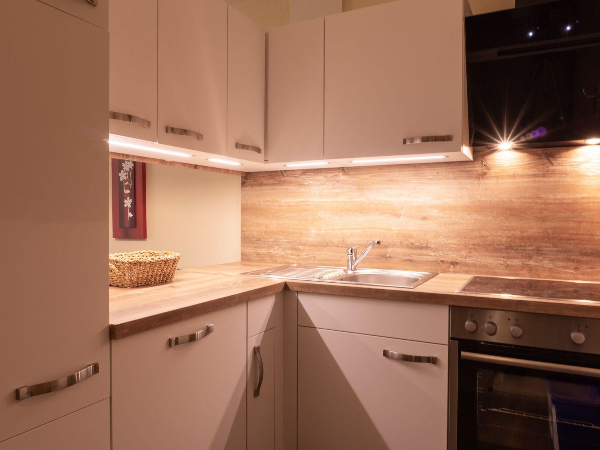 Es erwartet Sie eine gemütliche und großzügige Komfortferienwohnung mit 48 m². Bestehend aus einem Vorraum mit Garderobe, WC, getrenntes Badezimmer mit Wanne und Duschvorrichtung, Fön, NEUE Küche mit Durchreiche zum Essplatz, (Herd mit Backrohr und 4 Platten, Spülmaschine, Toaster, Wasserkocher, Kaffeemaschine), Wohnzimmer mit Doppelbettmatratzen-Schlafcouch, Flat-TV, DW-Telefon , W-lan gratis, Radio, ein separates Doppelzimmer, Safe, möblierte Südloggia, überdachter Autoabstellplatz, Brötchenservice, komplette Wäsche (Bett-, Tisch-, Bad- und Küchenwäsche). Zusätzlich zur Ferienwohnung können Sie noch ein Doppelzimmer oder Einzelzimmer mit DU/WC buchen.