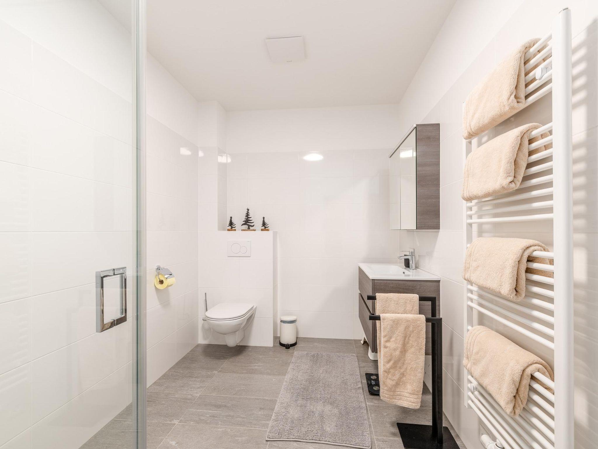 Ein Bad mit barrierefreier Dusche, sowie ein separates WC bieten zusätzlichen Komfort.