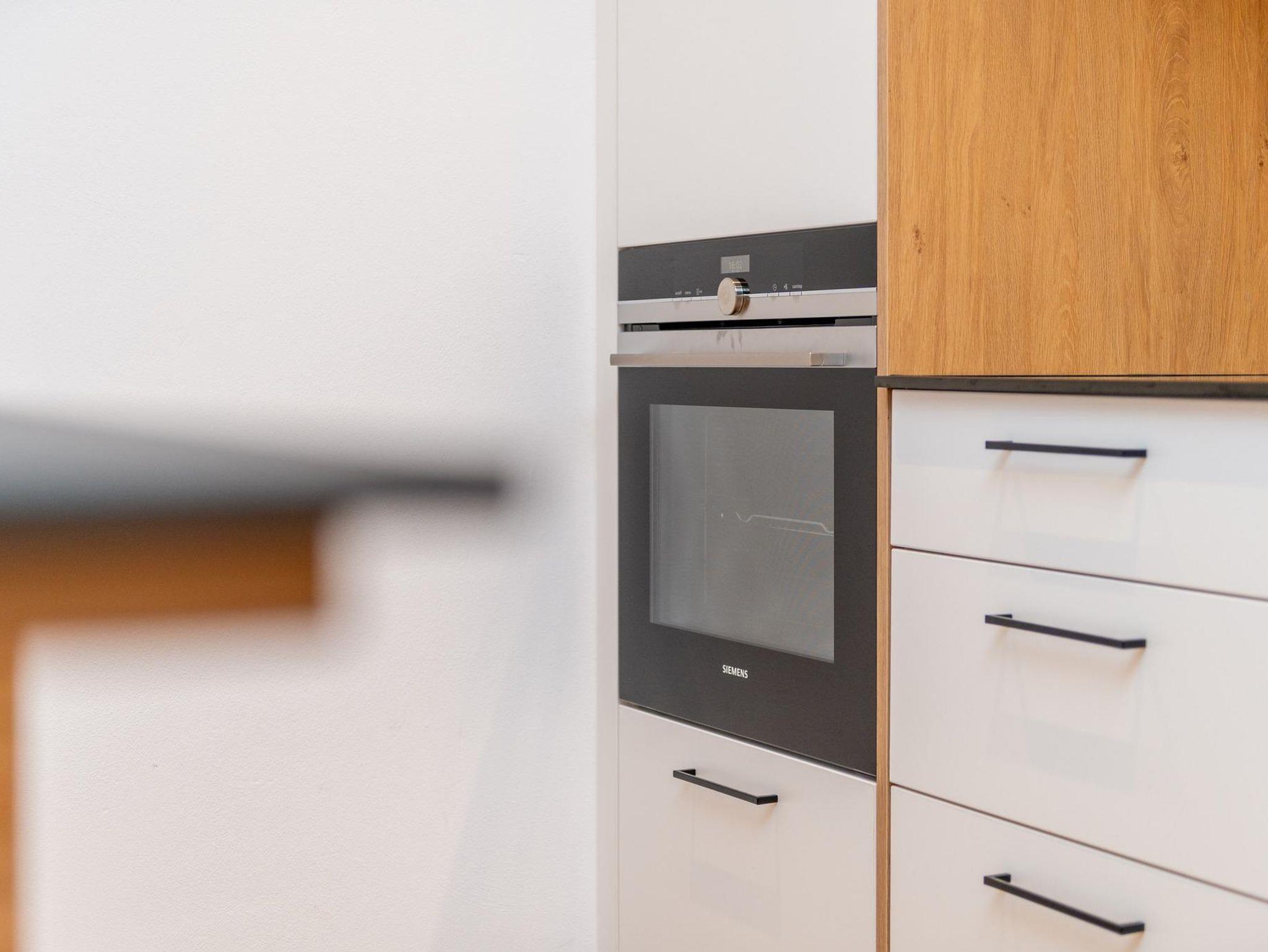 Neben einer voll ausgestatteten Küche gibt es in dieser neuen Ferienwohnung 2 SZ mit je einem Doppelbett. Zusätzlich gibt es im Wohnzimmer eine Schlafcouch für 2 weitere Personen.
