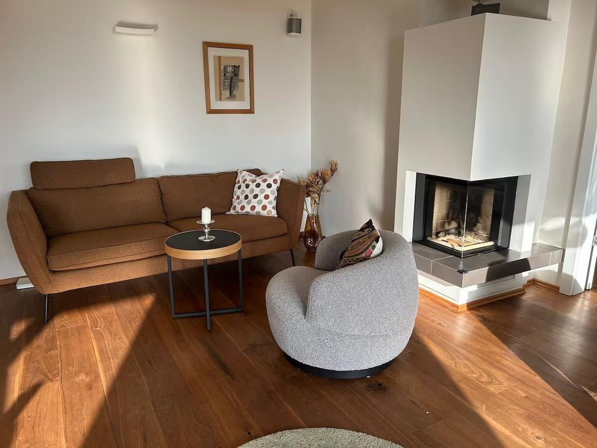 Im Eingang finden sie eine gut ausgestattete Gardeobe, weiter geht es in das gemütliche, sonnenbestrahlte Wohn- und Esszimmer mit offener und komplett ausgestatteter Küche und einer angrenzenden Terrasse -wo man mit Blick auf die Stadt und Umgebung seinen ersten Frühstückscafe oder Tee geniessen kann.