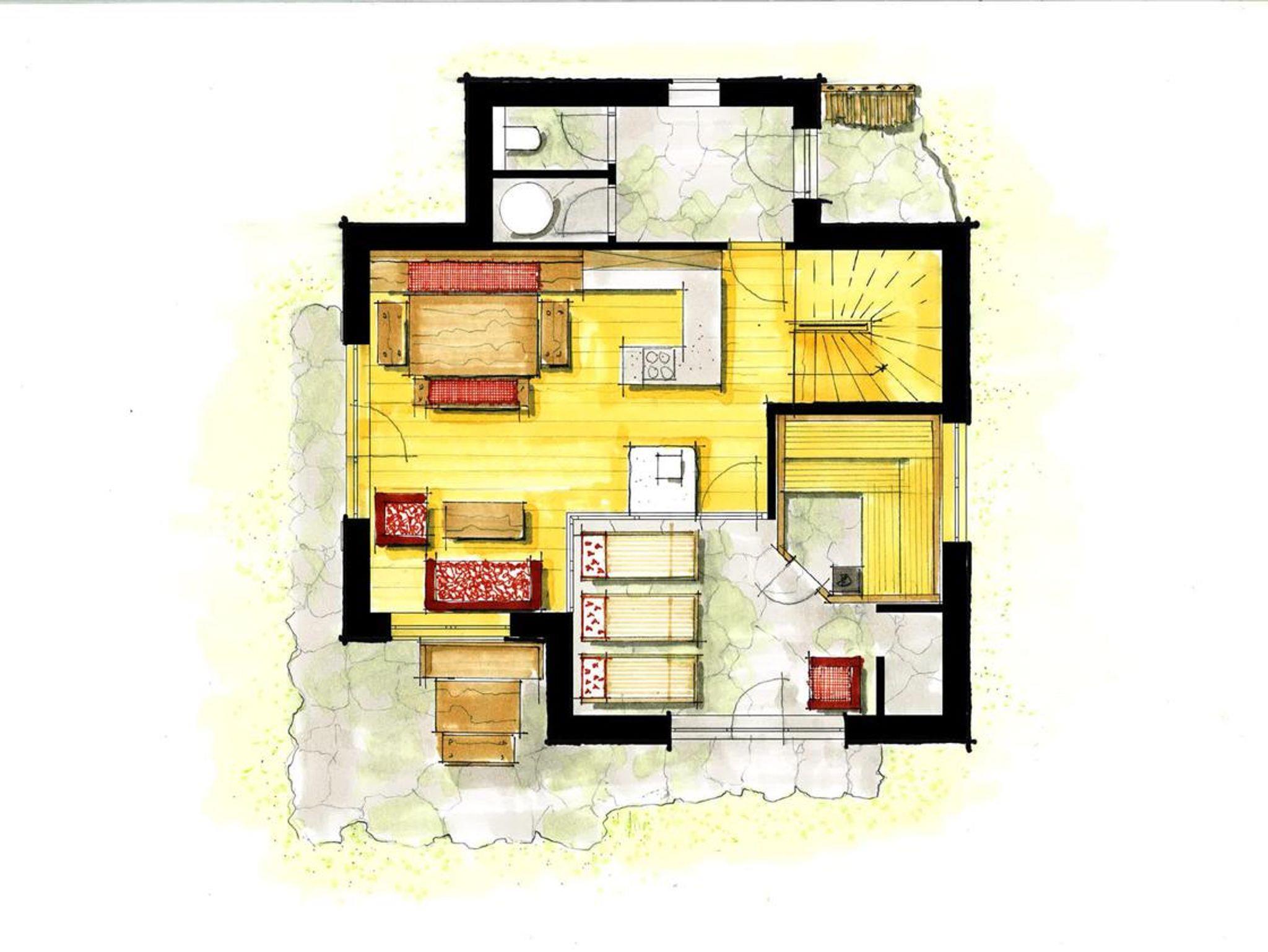 - gemütlicher Wohnbereich mit Kaminofen und Außenbadewanne