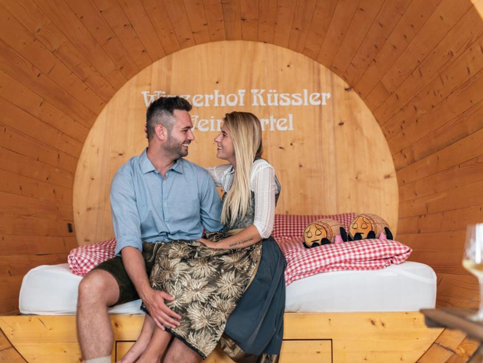 Manchmal ist das Besondere nur einen Fluss entfernt. In Grub an der March, dem ältesten Weinort Mitteleuropas, führt Verena Küssler einen Winzerhof, der Geschichte spürbar macht – ohne auf Komfort zu verzichten. Inmitten von Weinbergen und nur einen Steinwurf vom Naturschutzgebiet March-Thaya-Auen entfernt, finden sich hier zwölf weltweit einzigartige Weinfass-Suiten, dazu zwei Weinfass-Chalets mit eigenem Kellergewölbe. Wer mehr Platz sucht, bezieht das Weinviertler-Ferienhaus mit fünf Zimmern, vier Bädern und uneinsehbarem Innenhof. Ergänzt wird das Angebot durch Komfortzimmer, einen weitläufigen Winzergarten und einen Frühstücksbereich mit Terrasse.