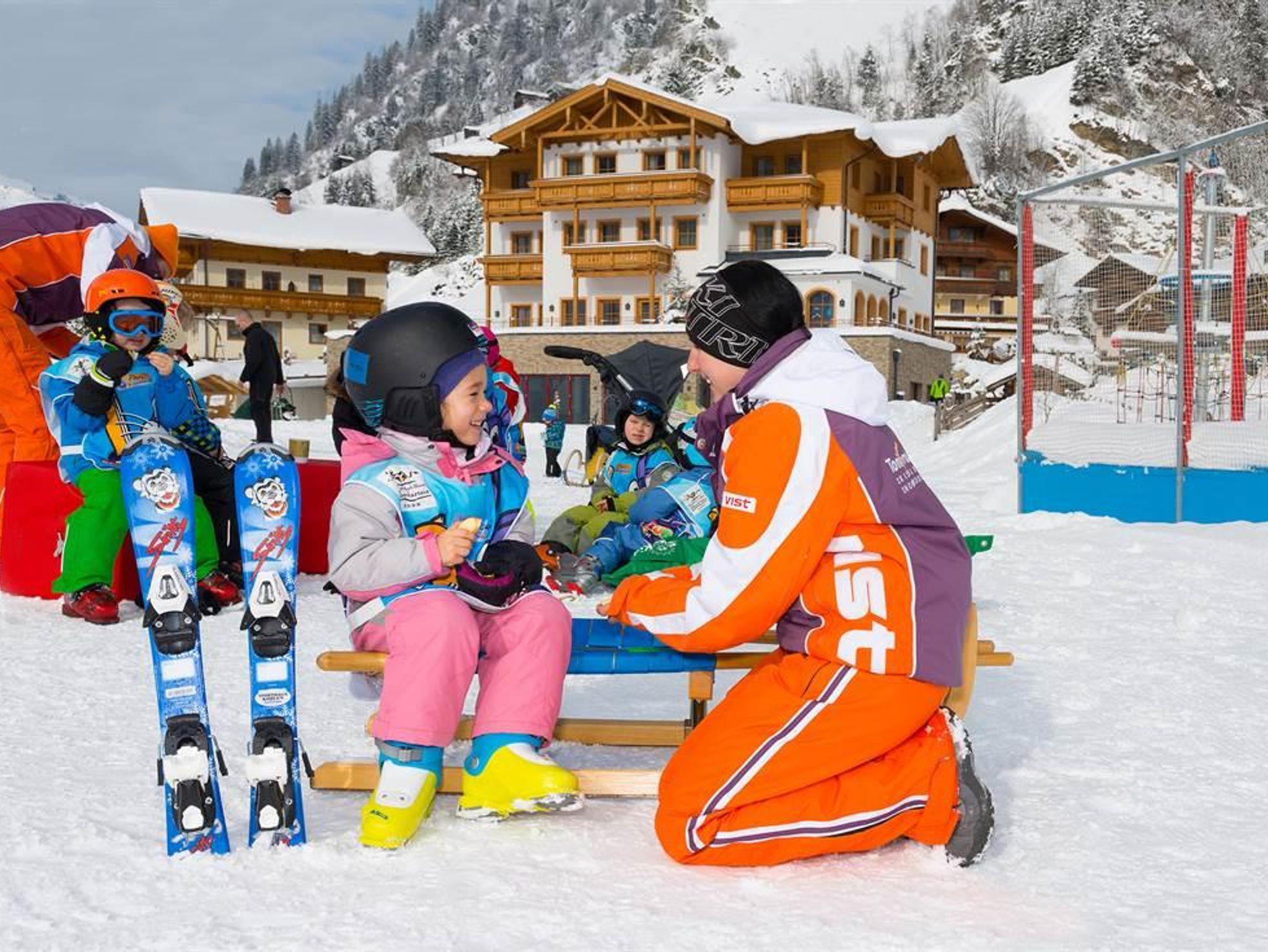 Natur-verbundener Familienurlaub im Bauerhof-Hotel Oberkarteis. Gelungene Kombination aus komfortablem 4*Hotel, intaktem Bauernhof und abwechslungsreichem Kinderprogramm für Ihren Sommer- und Winterurlaub. (rund 40h/Woche) Sommer: 4000m² großes Außengelände mit Abenteuer-Spielplatz, Fussballplatz, Go-Karts, etc., Kinderprogramm mit täglichen Ausflügen in die Natur Winter: Skibushaltestelle und Loipen-Einstieg direkt vom Hotel. Hauseigener Skikindergarten mit Skilehrer und Laufband. Tolles Winter-Kinderprogramm Bei jedem Wetter: - Erlebnis-Hallenbad mit 30°C Wassertemperatur und Kinderbecken, Chlorfreies Wasser - Indoor-Erlebnis-Zentrum (100m² Fussballhalle, 80m² Freizeitzentrum und 100m² Kindergarten mit Spiel- Lese- und Bastelecke)