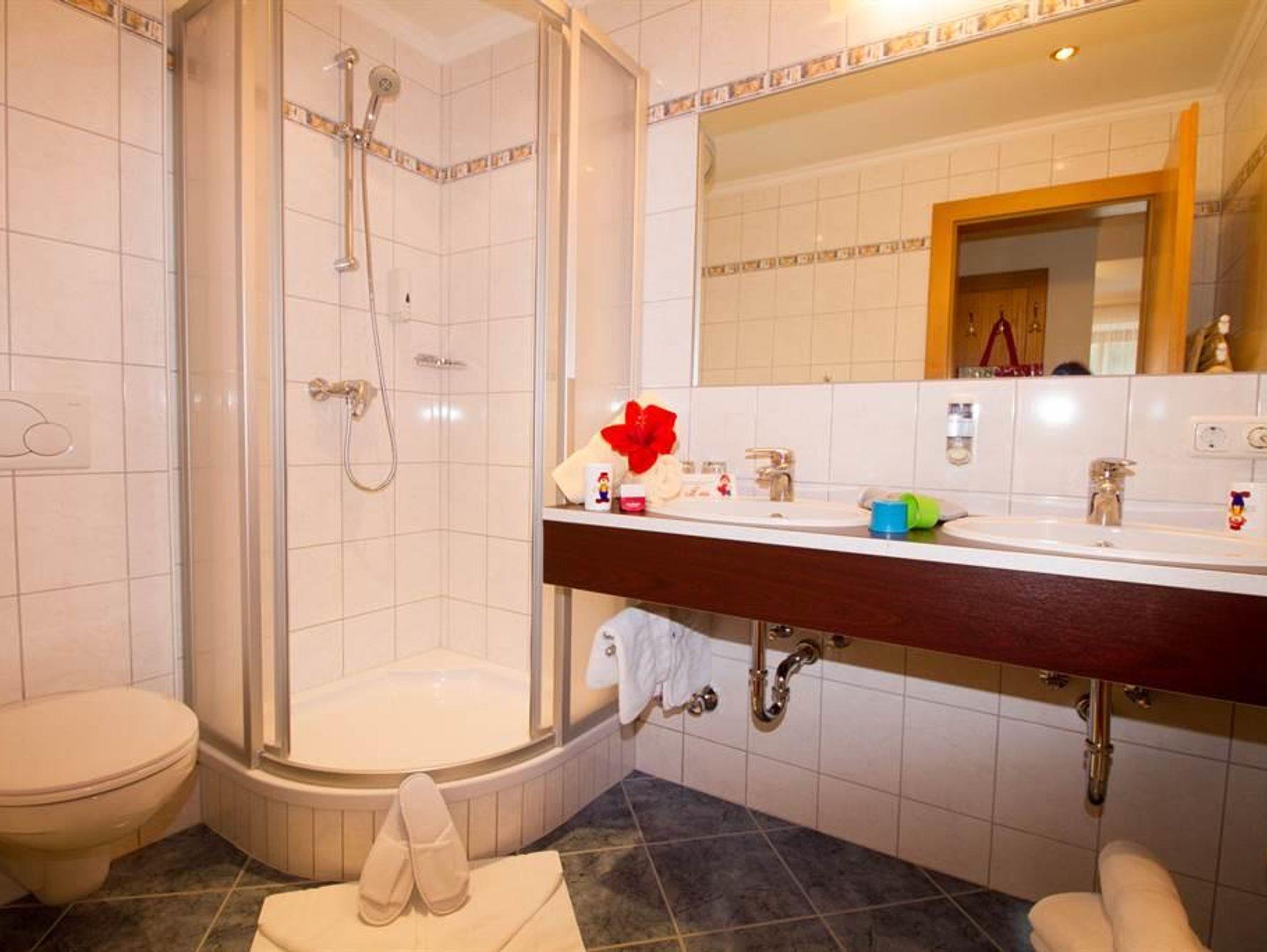 Freundlich und hell eingerichtet ist das Familienzimmer mit 2 Räumen auf die Bedürfnisse von kleineren Familien abgestimmt. Familiensuite (2 Raum), ca. 33m² mind. 2 Erw. und 1 Kind 1 Elternschlafzimmer 1 Kinderzimmer mit 2 Kinderbetten Dusche u. WC räumlich getrennt Babyüberwachungsanlage Kühlschrank Flat-TV, Telefon, W-LAN, Safe, Fön Balkon (im Neubau)