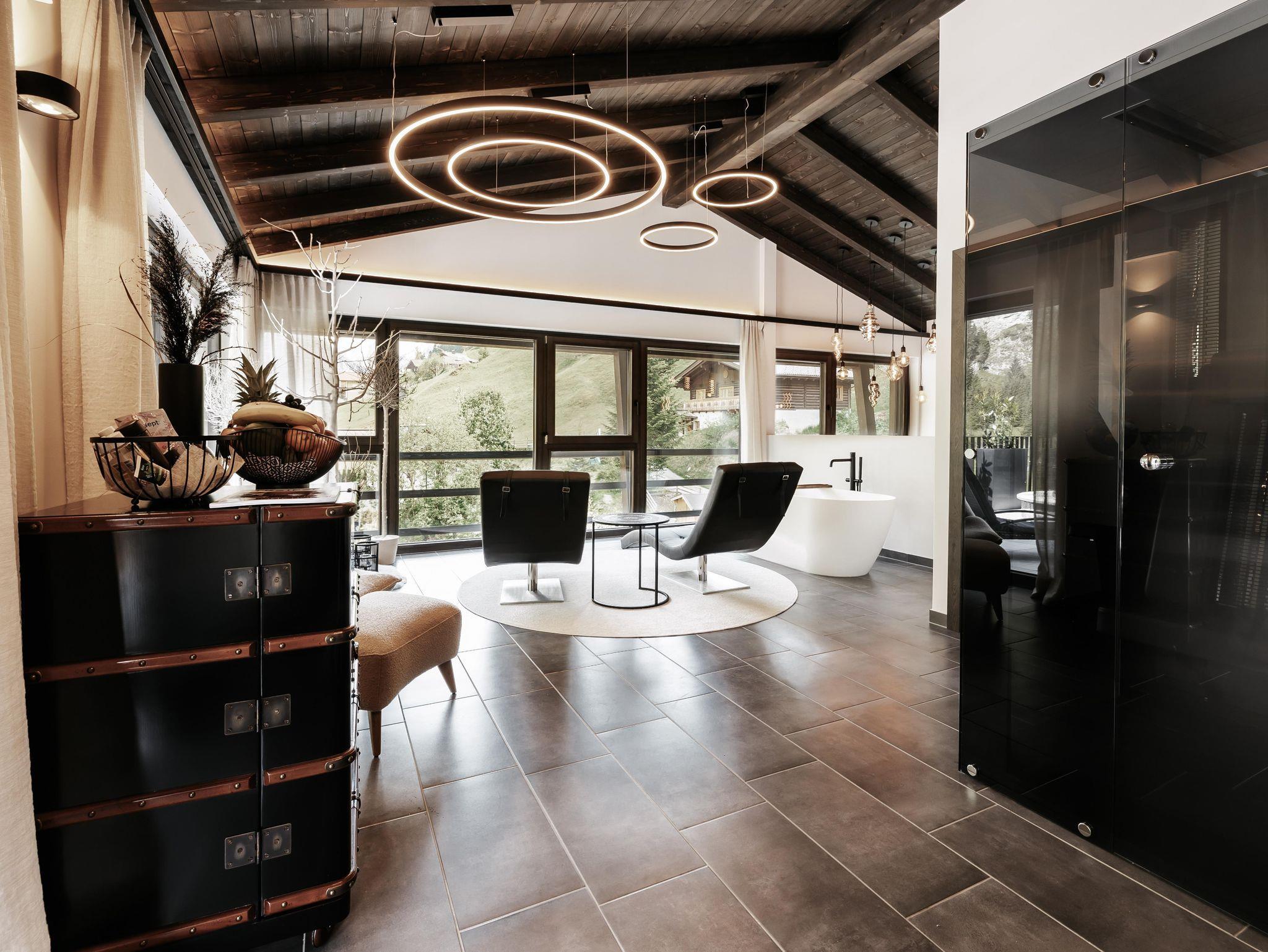 Über zwei Stockwerke erstreckt sich hier individuelles Urlaubsglück: Im Chalet Innergebirg erlebst du kulinarische Highlights, Entspannung im Wellnessbereich und Ruhe auf einem neuen Level. Auf 95m² Wohnfläche, 48m² Terasse und 150m² Garten lässt sich das Leben in vollen Zügen genießen. In diesem Chalet sind die gemütlichen Doppelzimmer mit angrenzenden Badezimmern für deinen individuellen, komfortablen Urlaub komplett von Wohn- und Wellnessbereich getrennt. Für absolute Wohlfühlatmosphäre und ein gutes Raumklima achten wir auf Naturmaterialien, verbautes Holz und Details in allen Chaletbereichen und stehen mit unserem Onkl Xonna System für mehr Urlaubsglück bereit.