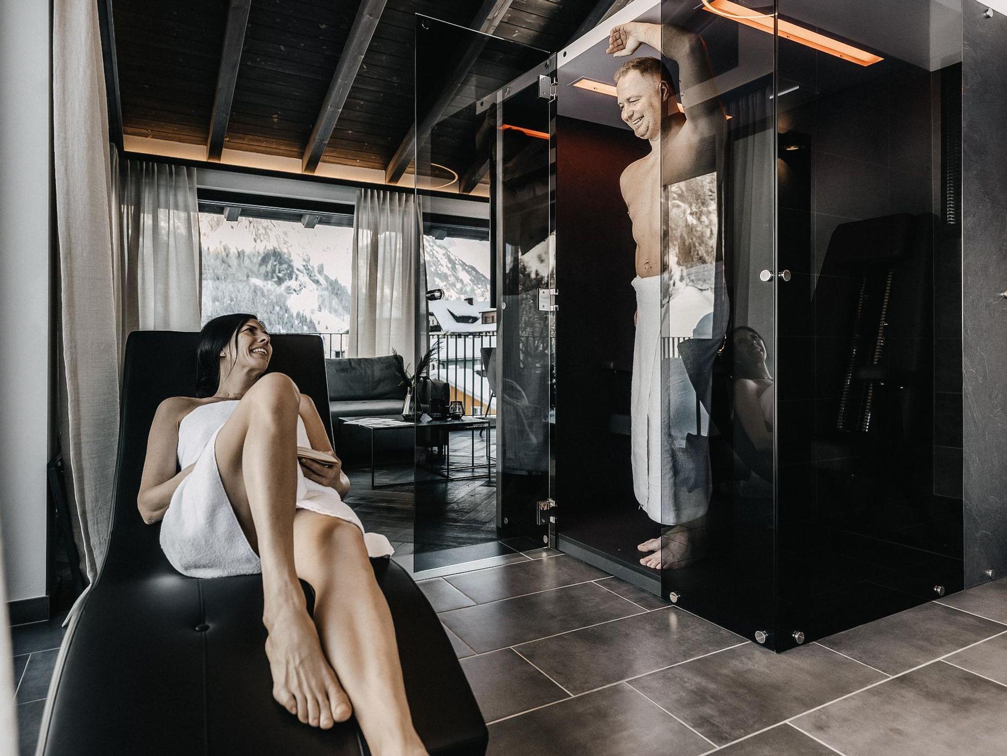 Auf 3 Stockwerken verteilt stehen drei Schlafzimmer inklusive privatem Badezimmer zur Verfügung. Im Doppelzimmer im UG bietet sich ein beeindruckender Blick durch die große Glasfront, die anderen Schlafzimmer sind direkt bei Wellness- und Wohnbereich. Wir achten auf Naturmaterialien und Details, der Designerholzkamin im Wohnbereich ist ein besonderes Highlight.