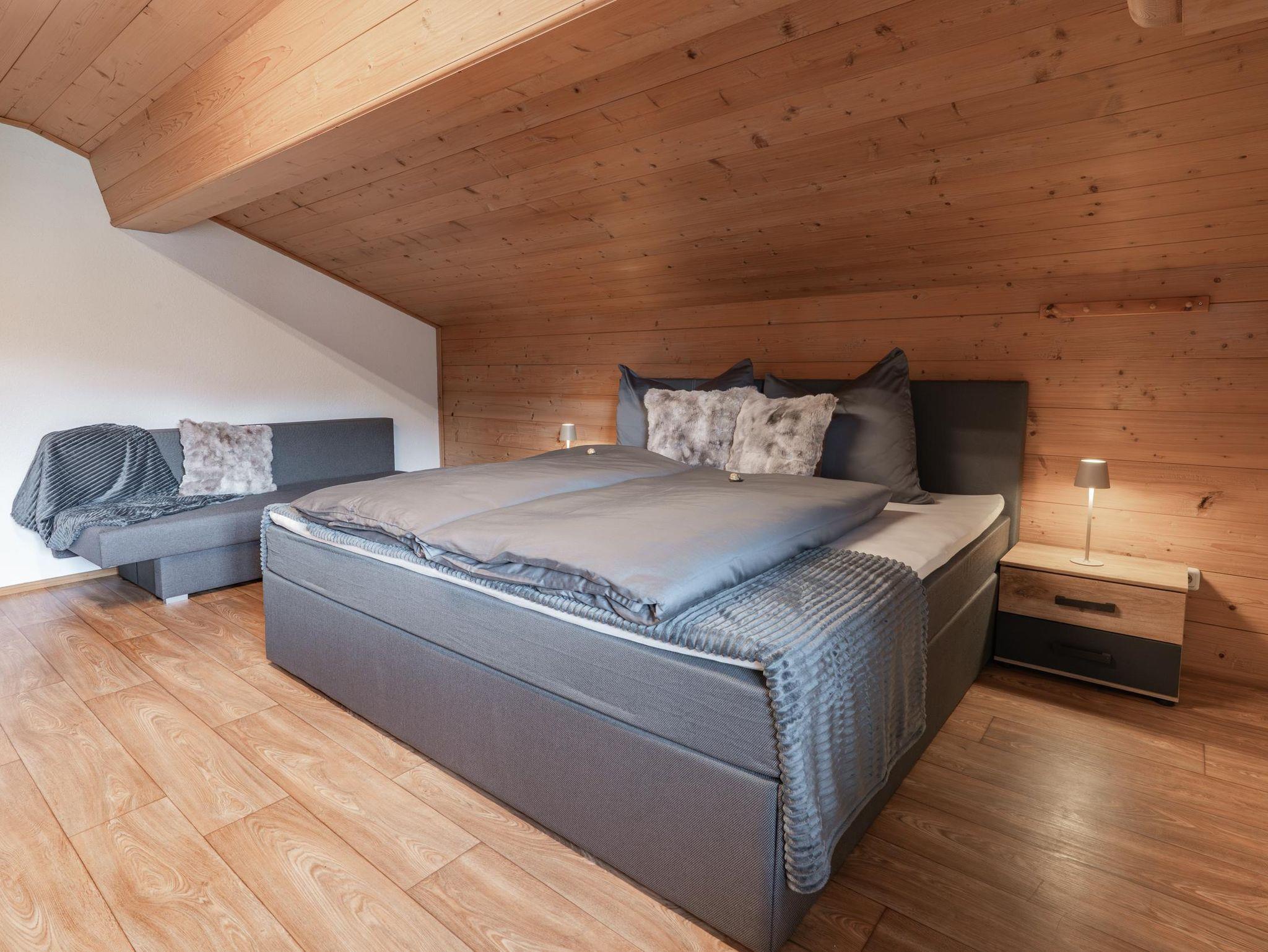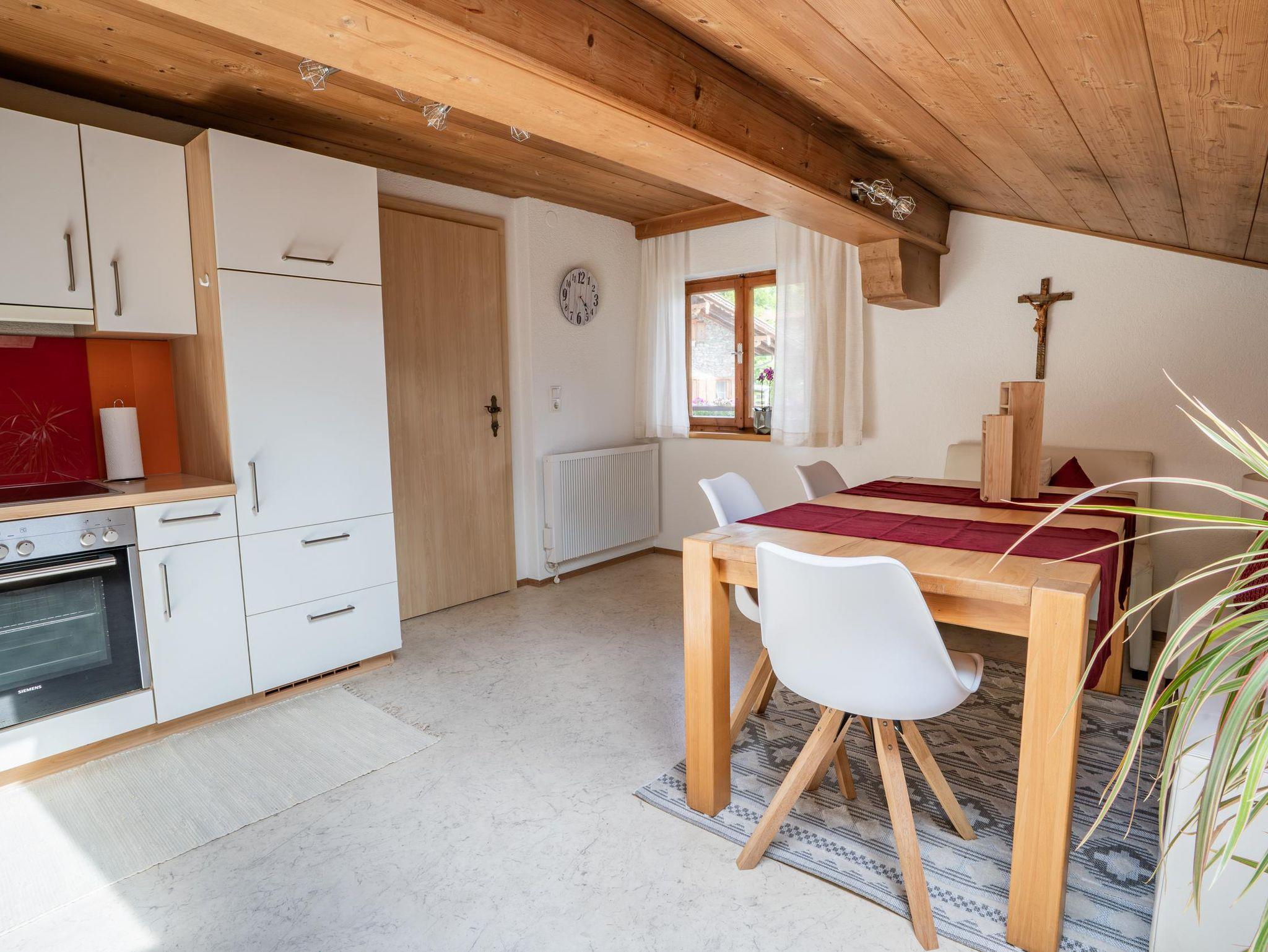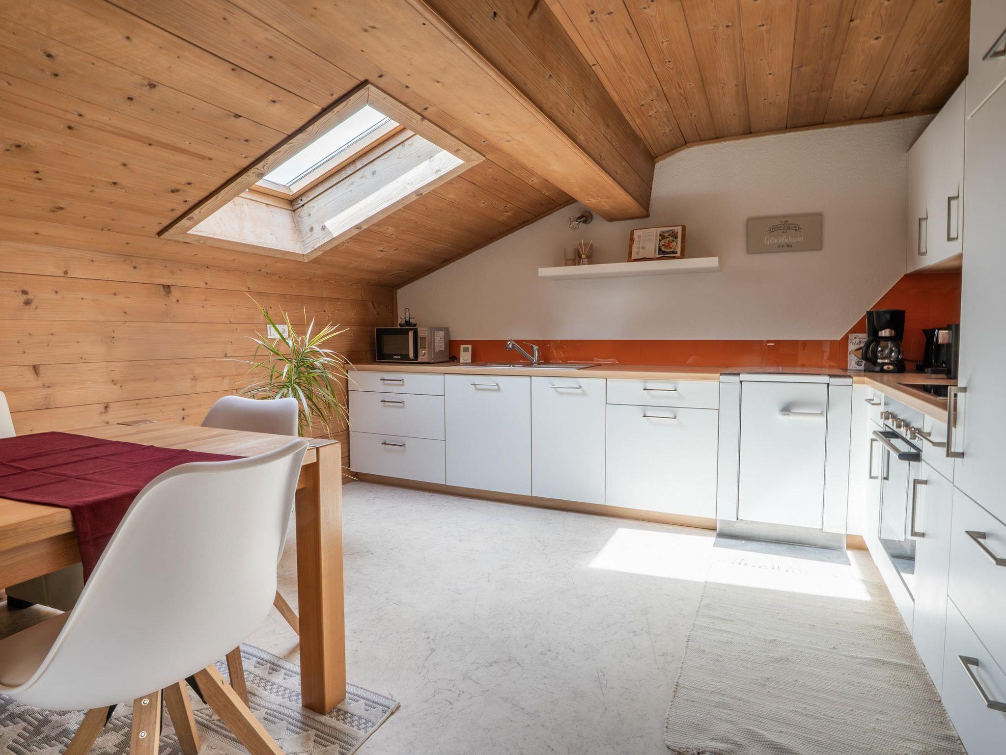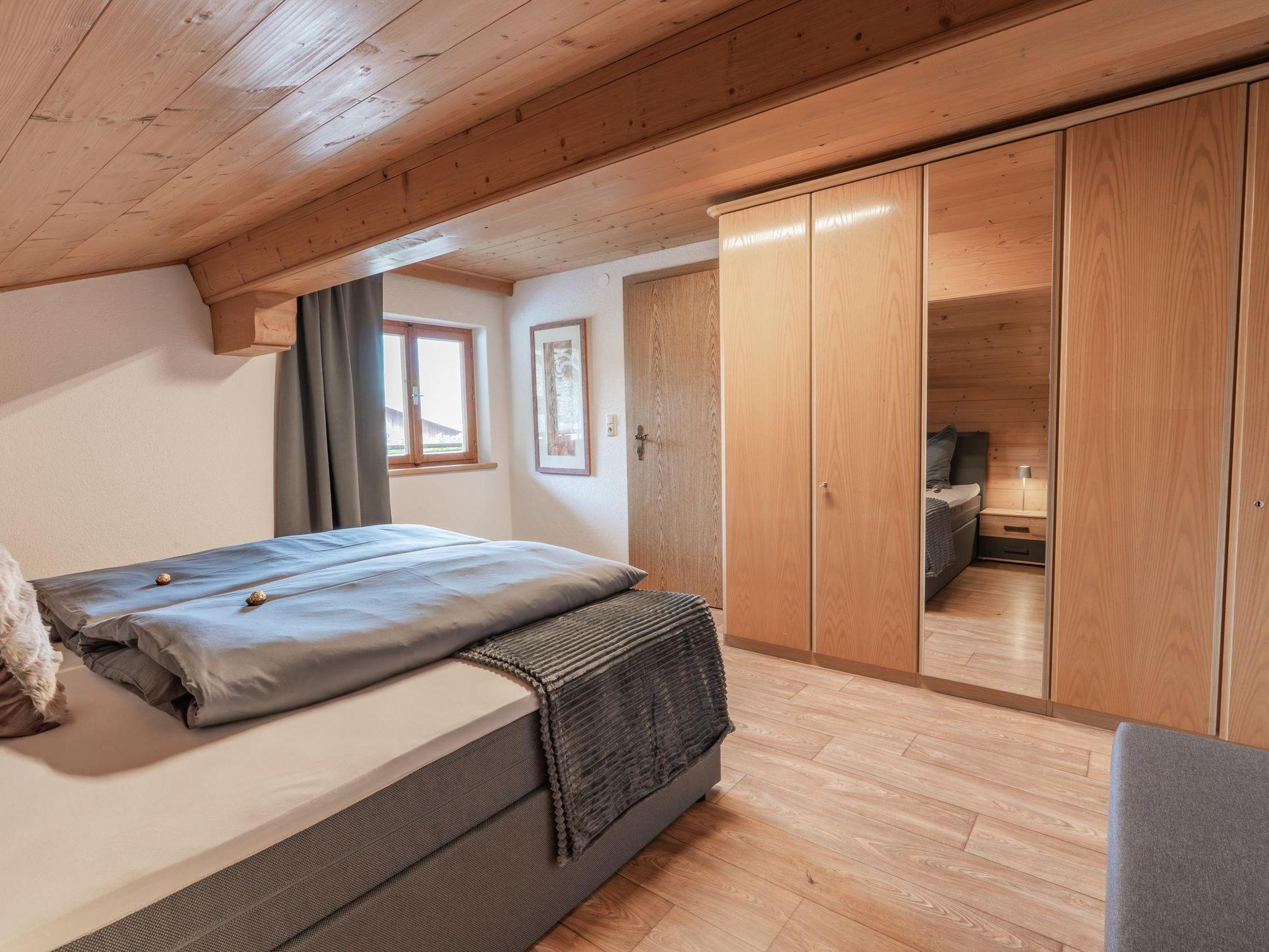 Unsere gemütliche Ferienwohnung im 2. Stock bietet viel Platz für gemeinsame Zeit – mit zwei Schlafzimmern, je einem Doppelbett, und einer bequemen Schlafcouch im Wohnzimmer finden hier bis zu sechs Personen bequem Platz. Die voll ausgestattete Küche lädt zum gemeinsamen Kochen ein, und vom Balkon genießt man den Blick aufs Landleben direkt am Bauernhof. Ideal für alle, die Natur und Ruhe lieben.