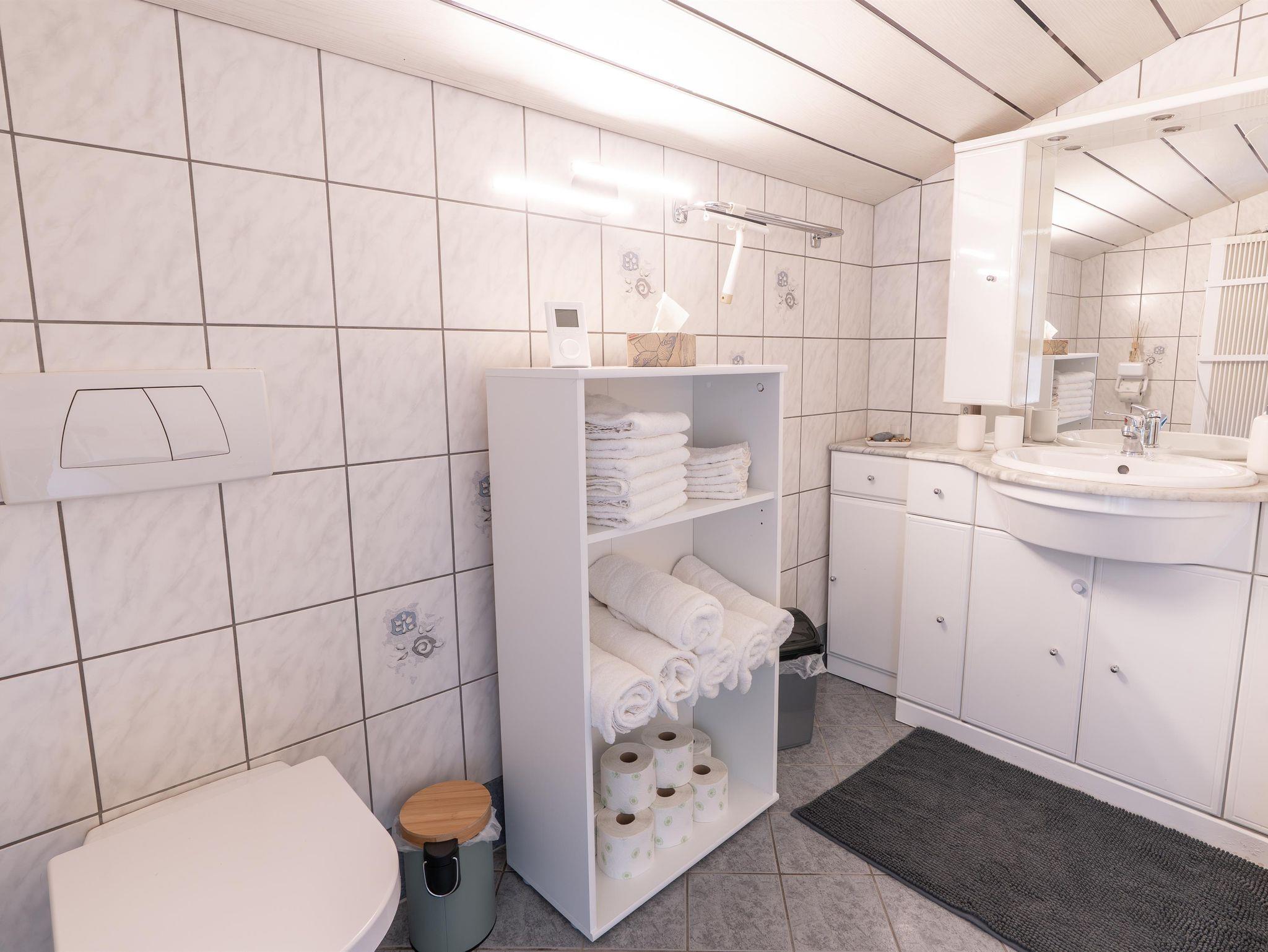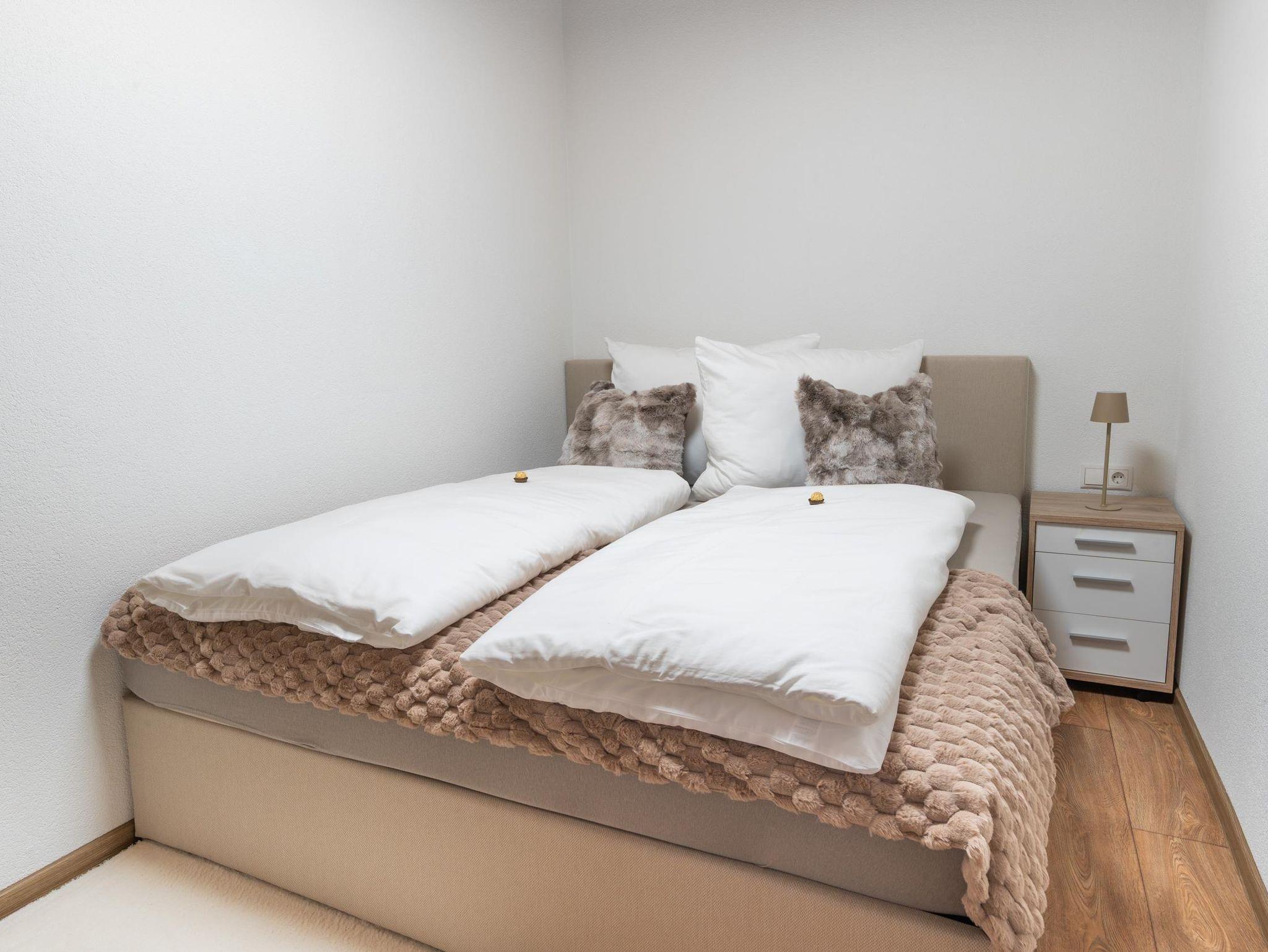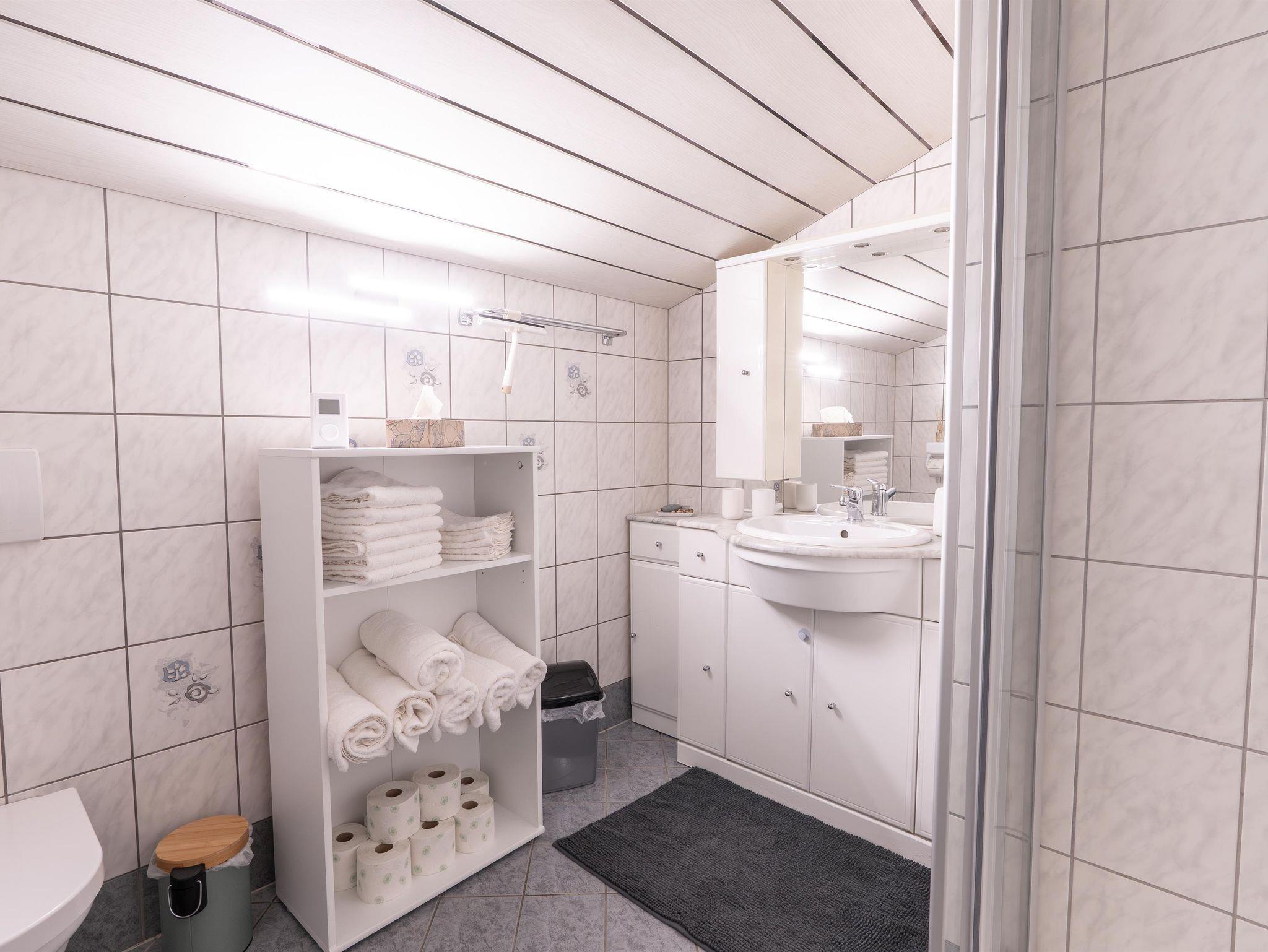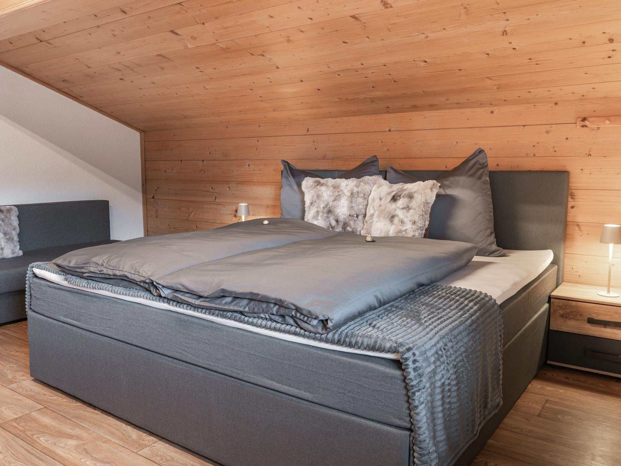 Unsere gemütliche Ferienwohnung im 2. Stock bietet viel Platz für gemeinsame Zeit – mit zwei Schlafzimmern, je einem Doppelbett, und einer bequemen Schlafcouch im Wohnzimmer finden hier bis zu sechs Personen bequem Platz. Die voll ausgestattete Küche lädt zum gemeinsamen Kochen ein, und vom Balkon genießt man den Blick aufs Landleben direkt am Bauernhof. Ideal für alle, die Natur und Ruhe lieben.