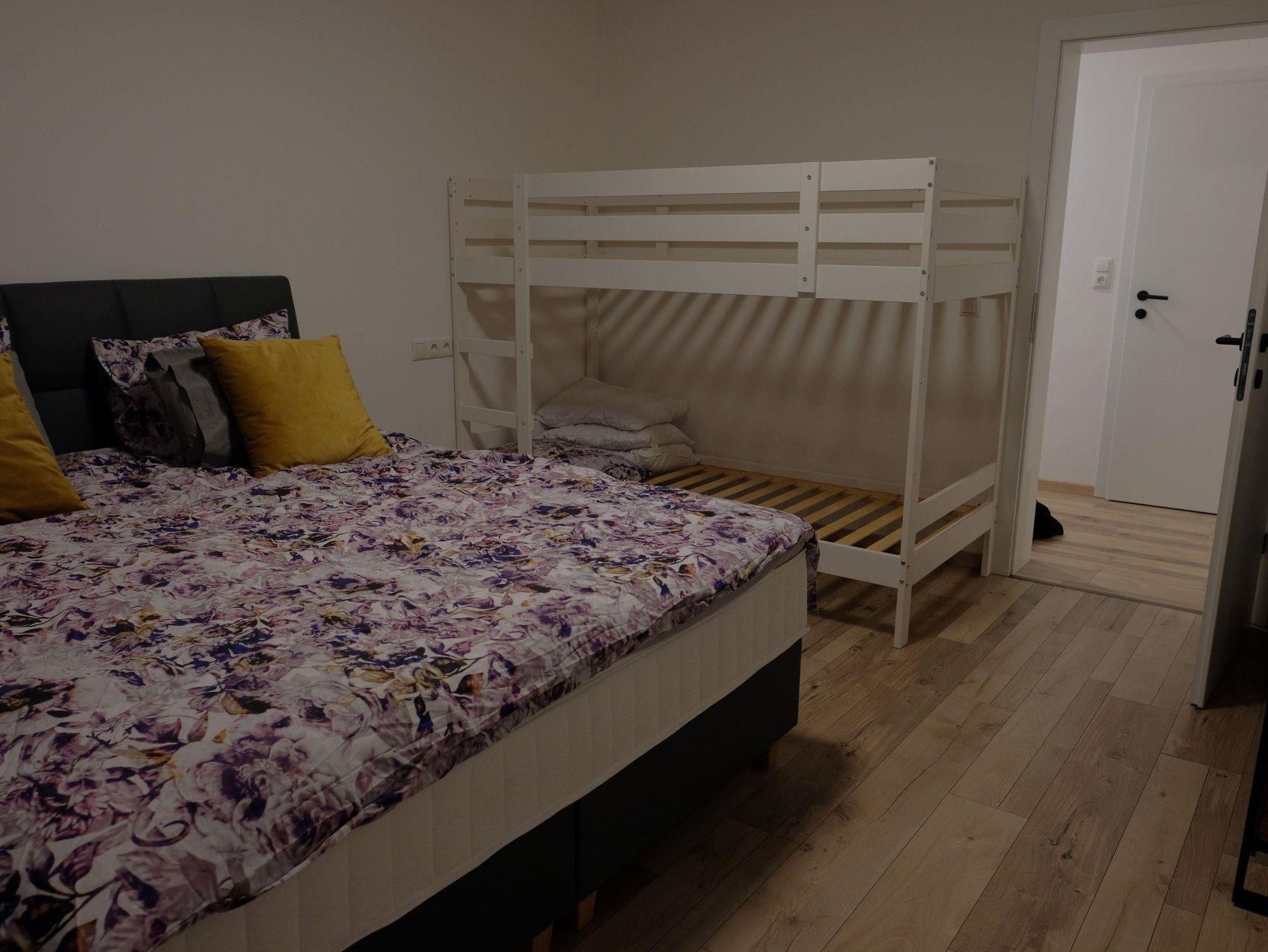 2 große Schlafzimmer (2 Kingsize-Betten / 2 Etagenbetten)