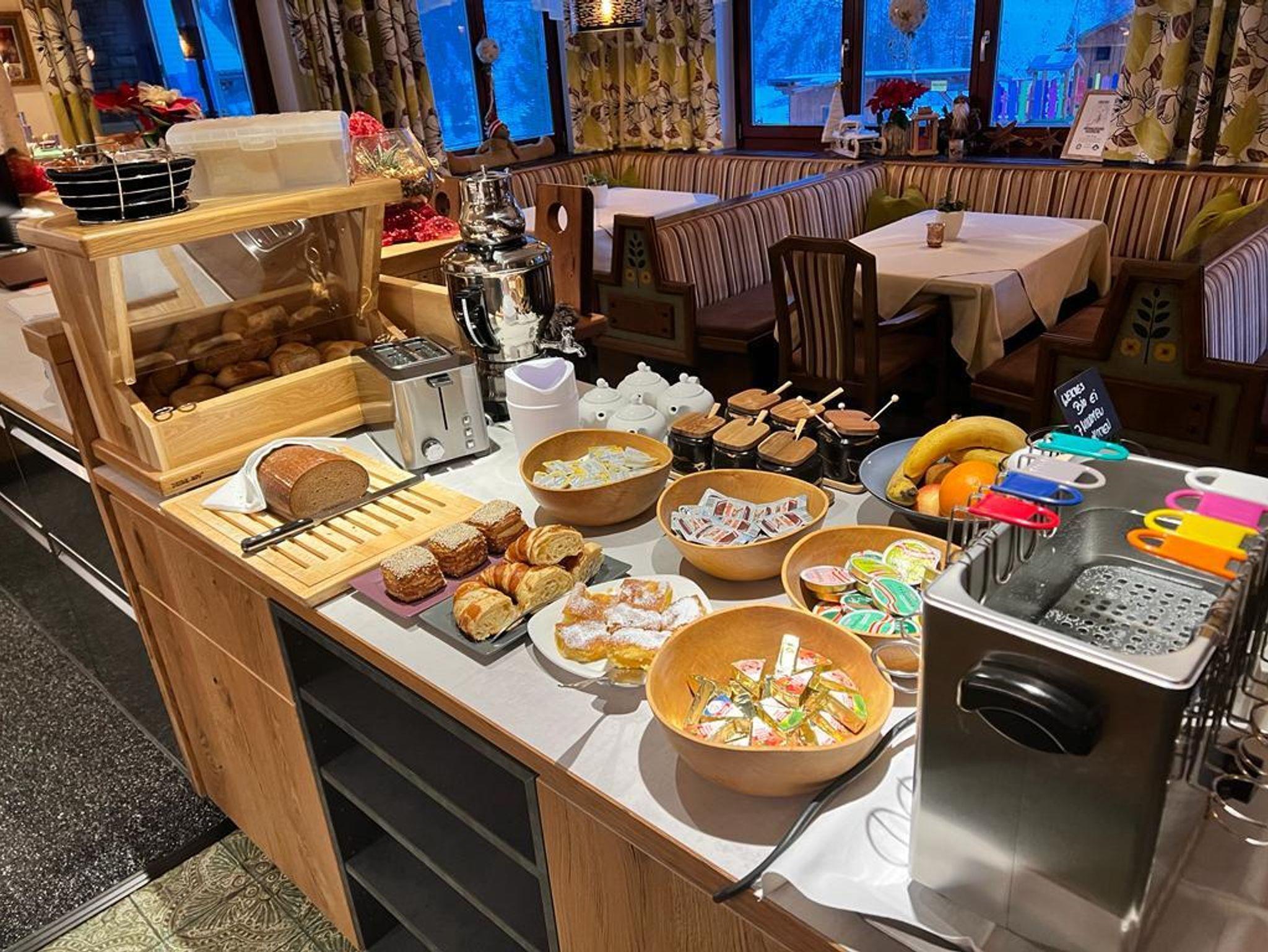 Der Morgen bei uns beginnt mit einen reichhaltigen Frühstücksbuffet, nach einem schönen Ski Tag genießen Sie gepflegte Getränke an der Bar und im Anschluss wird Ihnen ein mit viel Liebe zubereitetes 4 Gänge Menü serviert. (Einmal wöchentlich Ruhetag)