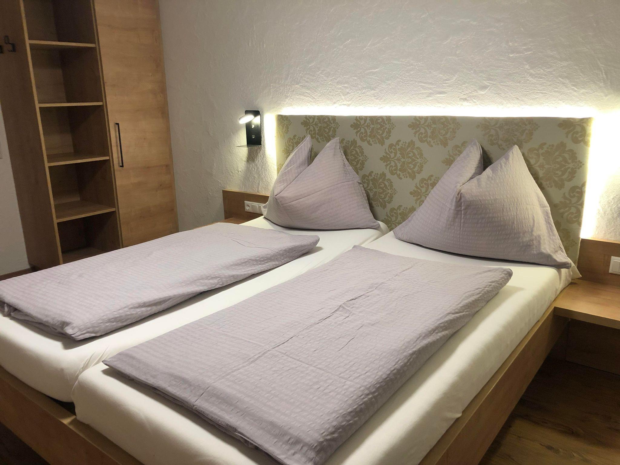 Erster Stock: Vorraum; 1 Doppelzimmer, 1 Doppelzimmer mit Einzelschlafsofa, 1 Doppelzimmer mit Doppelbett und 2 Einzelschlafsofas - alle 3 Zimmer sind komplett neu eingerichtet und mit WC, Dusche, TV und Balkon ausgestattet.
