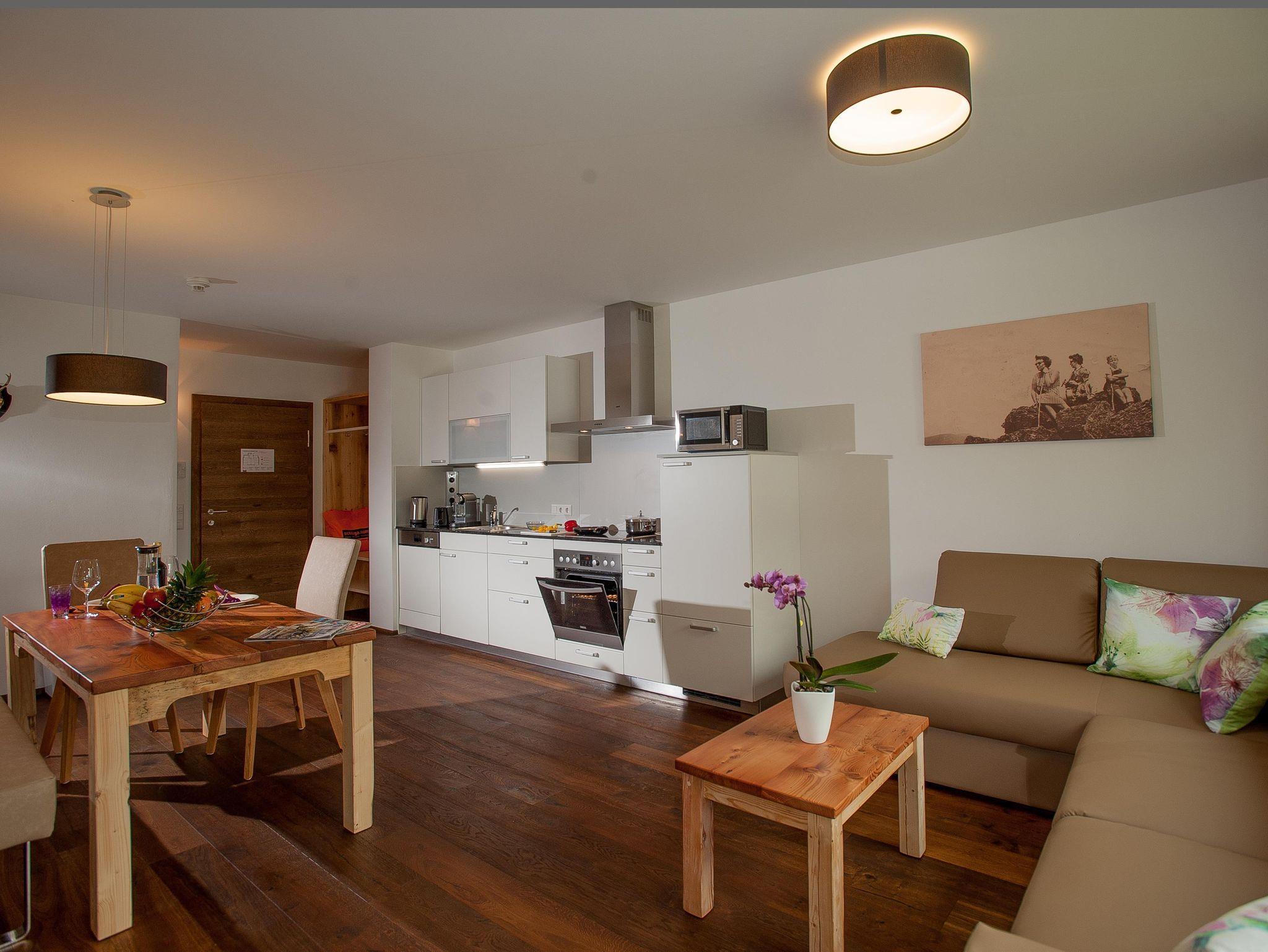 Das Alpin Apartment 4+2 ist eine geräumige und komfortable Wohnung mit allen notwendigen Annehmlichkeiten. Diese Wohnung ist für bis zu 6 Personen geeignet. Je nach Wohnungsnummer befindet sie sich im ersten oder zweiten Stock und es gibt keinen Aufzug. Im Wohnzimmer befindet sich eine gemütliche Sitzecke mit einem Schlafsofa (2 Personen) und Fernseher, ein Essbereich und eine Küche mit Backofen, Geschirrspüler, Nespresso-Maschine und Filterkaffeemaschine. Die Wohnung hat 2 Schlafzimmer mit einem Doppelbett. Das Badezimmer verfügt über eine Badewanne, eine Dusche, ein Waschbecken und ein Föhn. Die Toilette ist vom Badezimmer getrennt. Außerdem verfügt die Wohnung über einen Balkon und kostenloses WLAN. Haustiere sind willkommen.