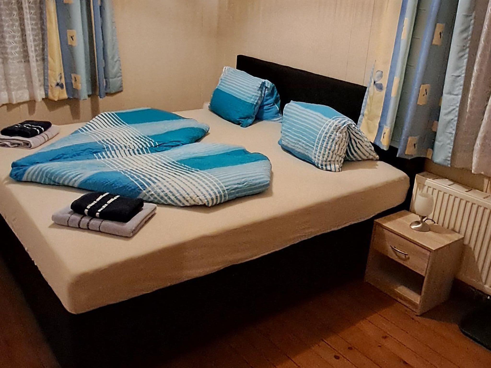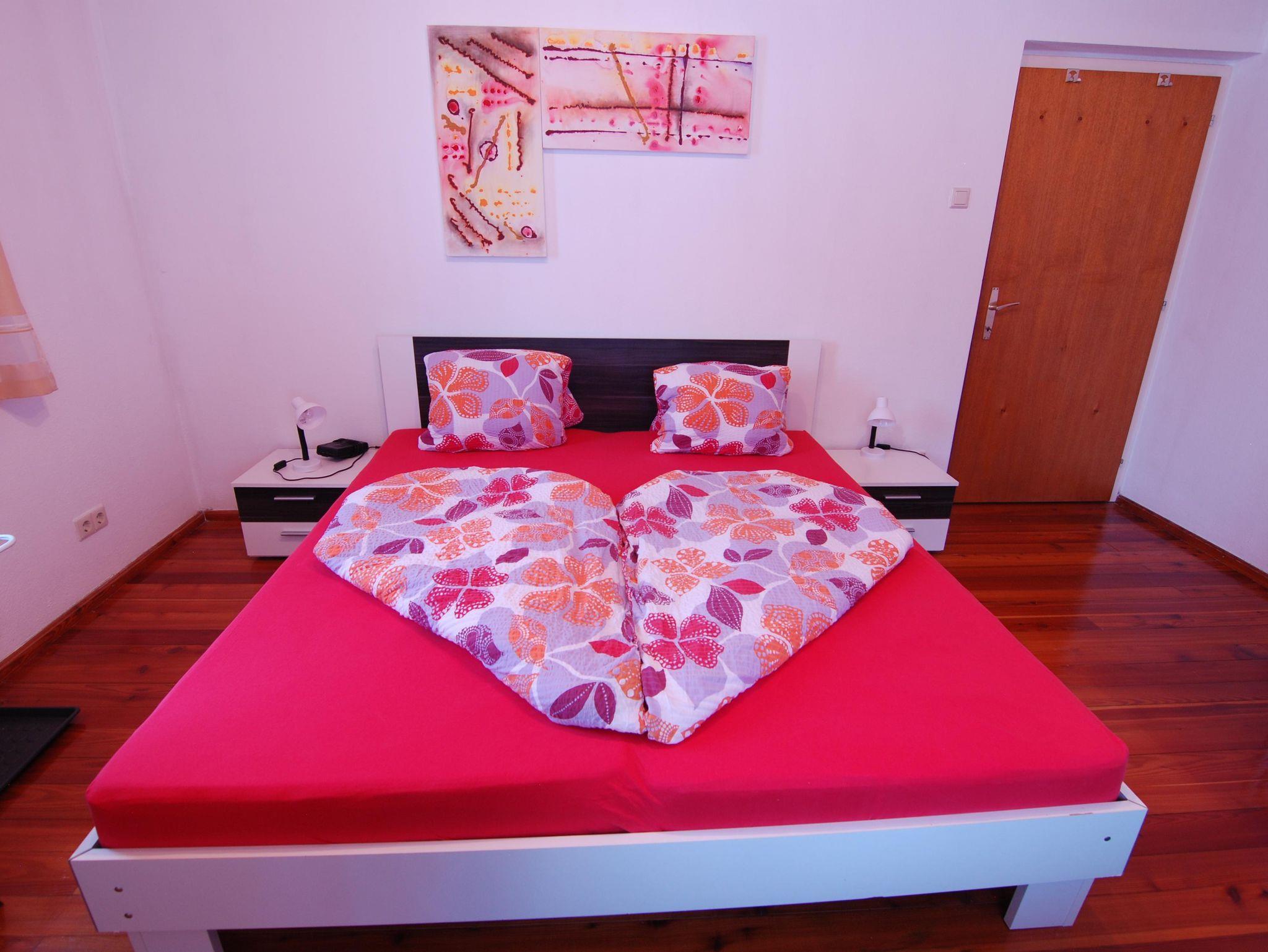 In zwei Zimmern befinden sich jeweils ein Doppelbett sowie ein Einzelbett. In beiden Zimmern sind ebenso Fernseher mit Satellitenanschluss zu finden. Im dritten Zimmer steht ein weiteres Doppelbett. In unserer Ferienwohnung gibt es auch einen schönen Vorraum mit Garderobe. Das Badezimmer verfügt über eine Dusche, ein WC und einen schönen Waschbereich. In der Küche findet man genügend Platz für bis zu 8 Personen. Mit einem großen Esstisch und einem Fernseher mit Satellitenanschluss steht auch gemütlichen Fernsehabenden nichts im Wege. Direkt von der Küche aus kommt man auf die Terasse wo sich auch der direkte Anschluss an den Garten mit Kamingrill befindet. Dort kann man gemütliche Grillabende genießen.