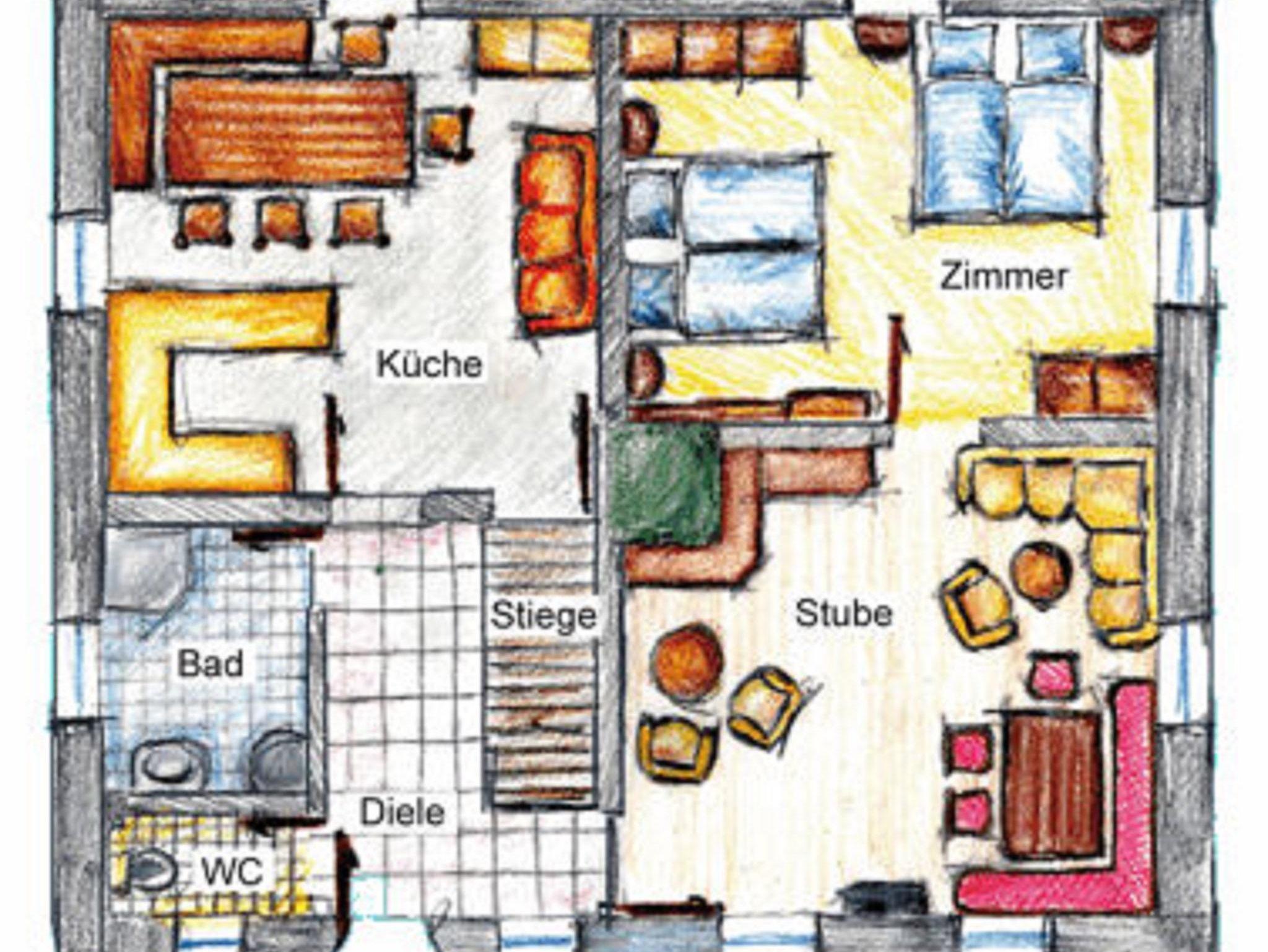 Eine große Küche gibt viel Platz für bis zu 18 Personen. Elektroherd und Holzherd in der Küche, genügend Geschirr ist auch vorhanden. Bodenheizung in den Bädern und der Küche vorhanden.
