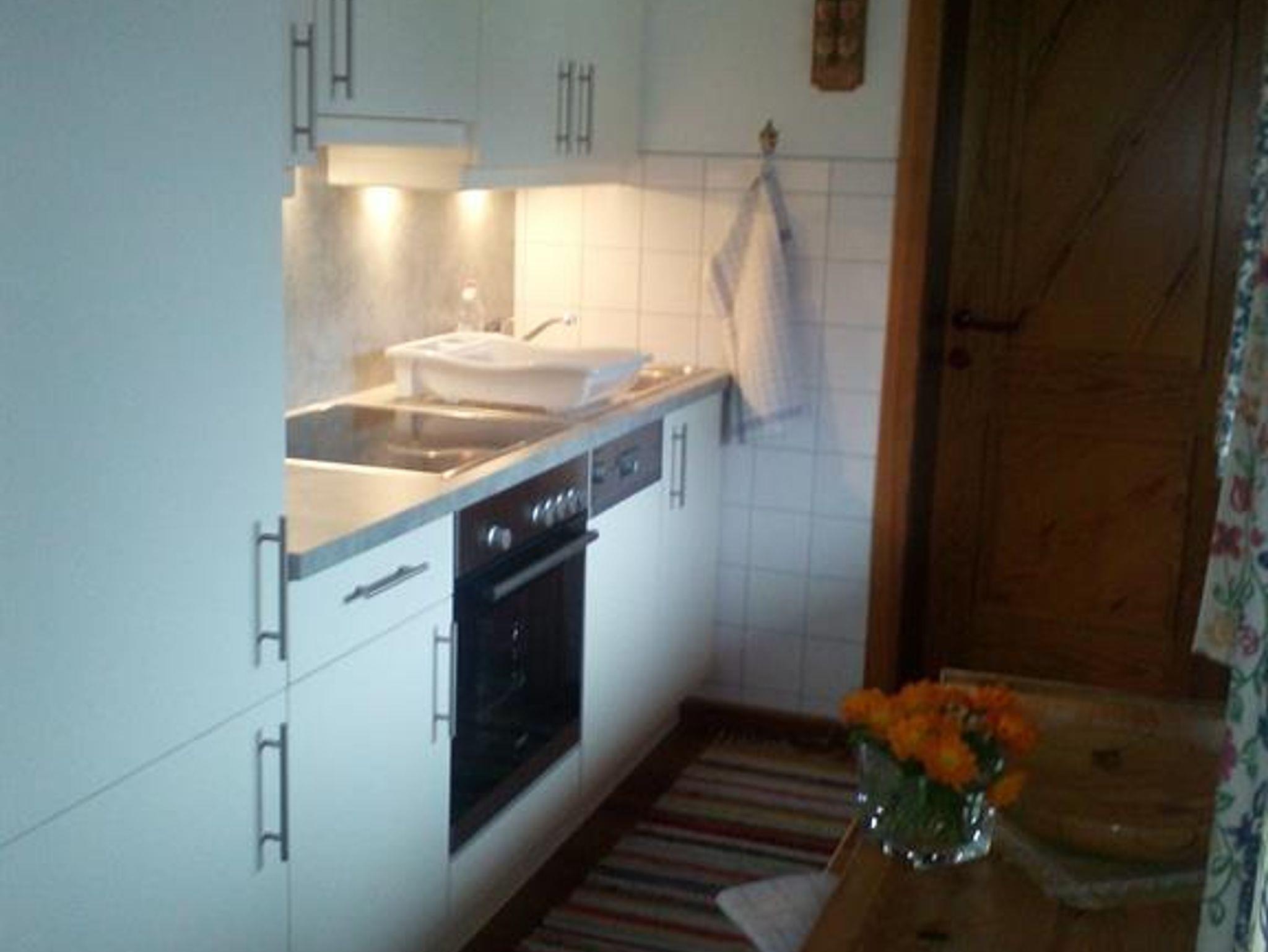 Ferienwohnung mit 48m² für 2-4 Personen, Küchenzeile komplett und mit Geschirrspüler, 1 Schlafzimmer, 1 Wohnschlafzimmer, Dusche und WC. großer Süd-Balkon, Sat-TV/ Radio, Wireless Lan. Waschmaschine im Appartement.