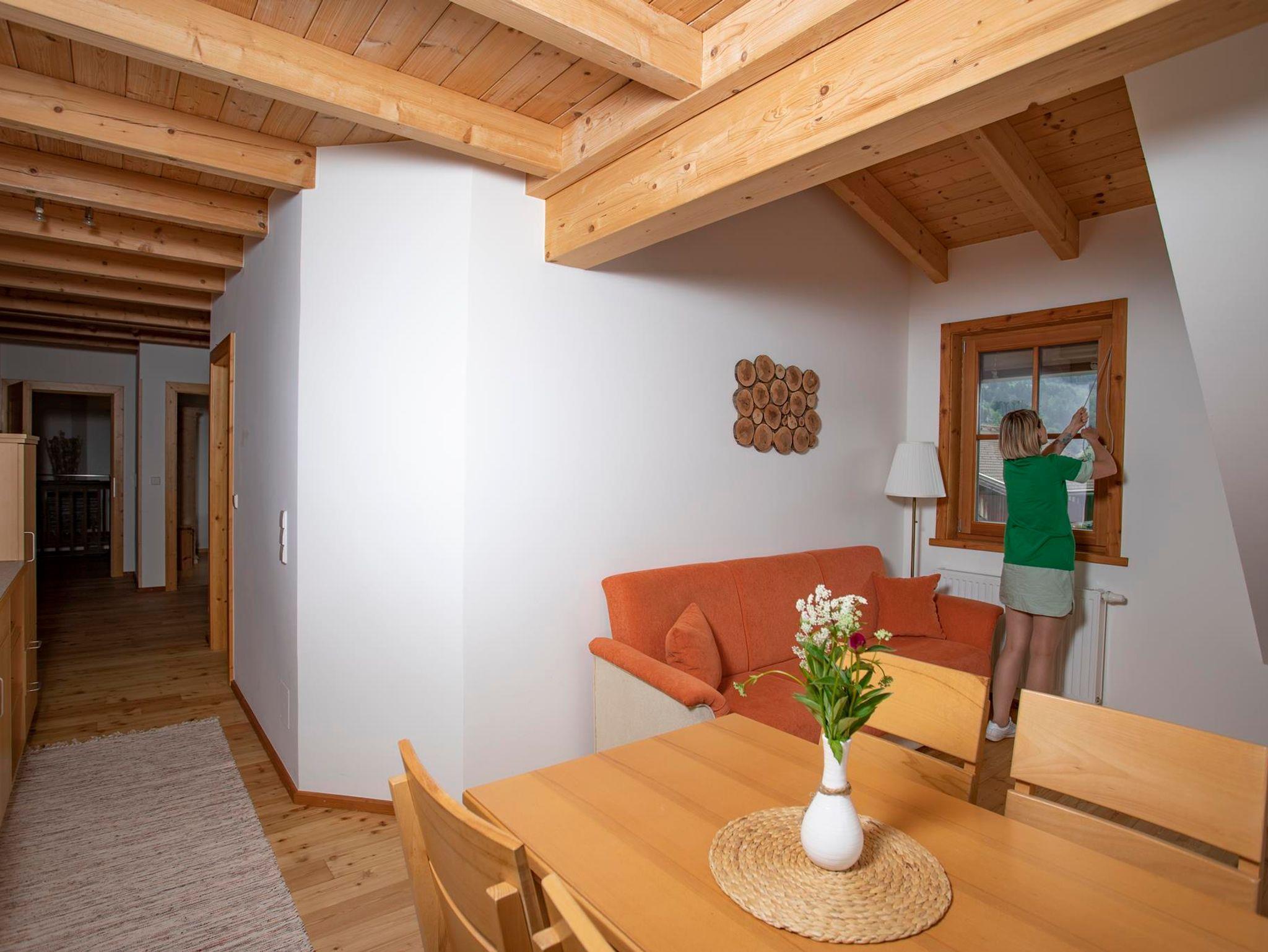Apartment Kirchblick hat ca. 35m² und besteht aus einem Schlafzimmer mit Doppelbett, einer Wohnküche mit TV, Dusche/WC.