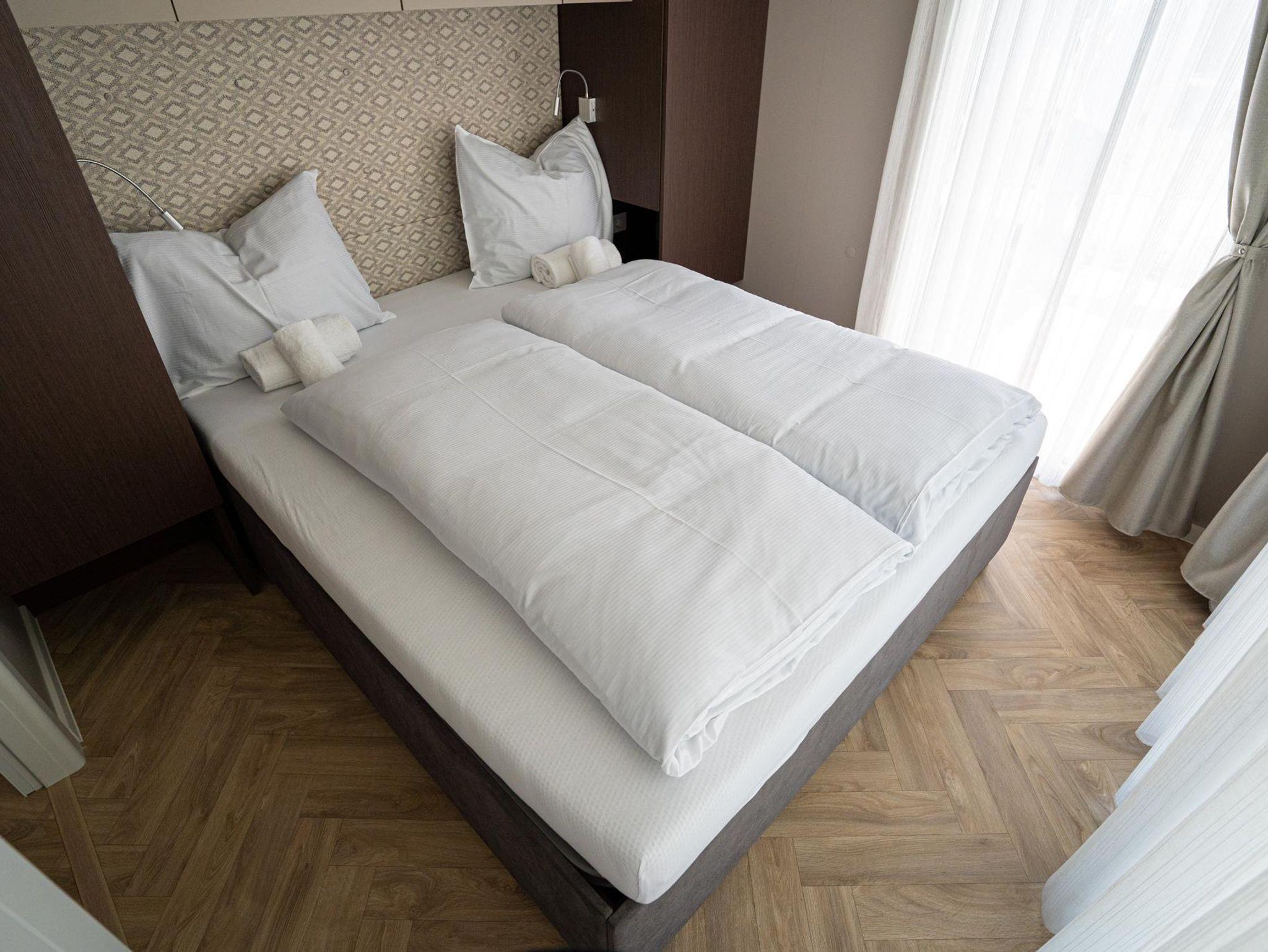 Das Cottage Enzian versprüht pures Alpenfeeling. Es besticht durch ein geräumiges Wohnzimmer mit viel Licht und direktem Zugang zur Terrasse sowie zwei komfortable Schlafzimmer, eines mit einem Doppelbett und eines mit zwei Einzelbetten. Eine voll ausgestattete Küche, ein luxuriöses Badezimmer mit begehbarer Dusche, Waschbecken, freischwebendem WC und eine separate Toilette mit Waschbecken sorgen für den besonderen Wohlfühlfaktor. Auf der Sonnenterrasse stehen Sitzmöglichkeiten für gemütliche Stunden bereit.