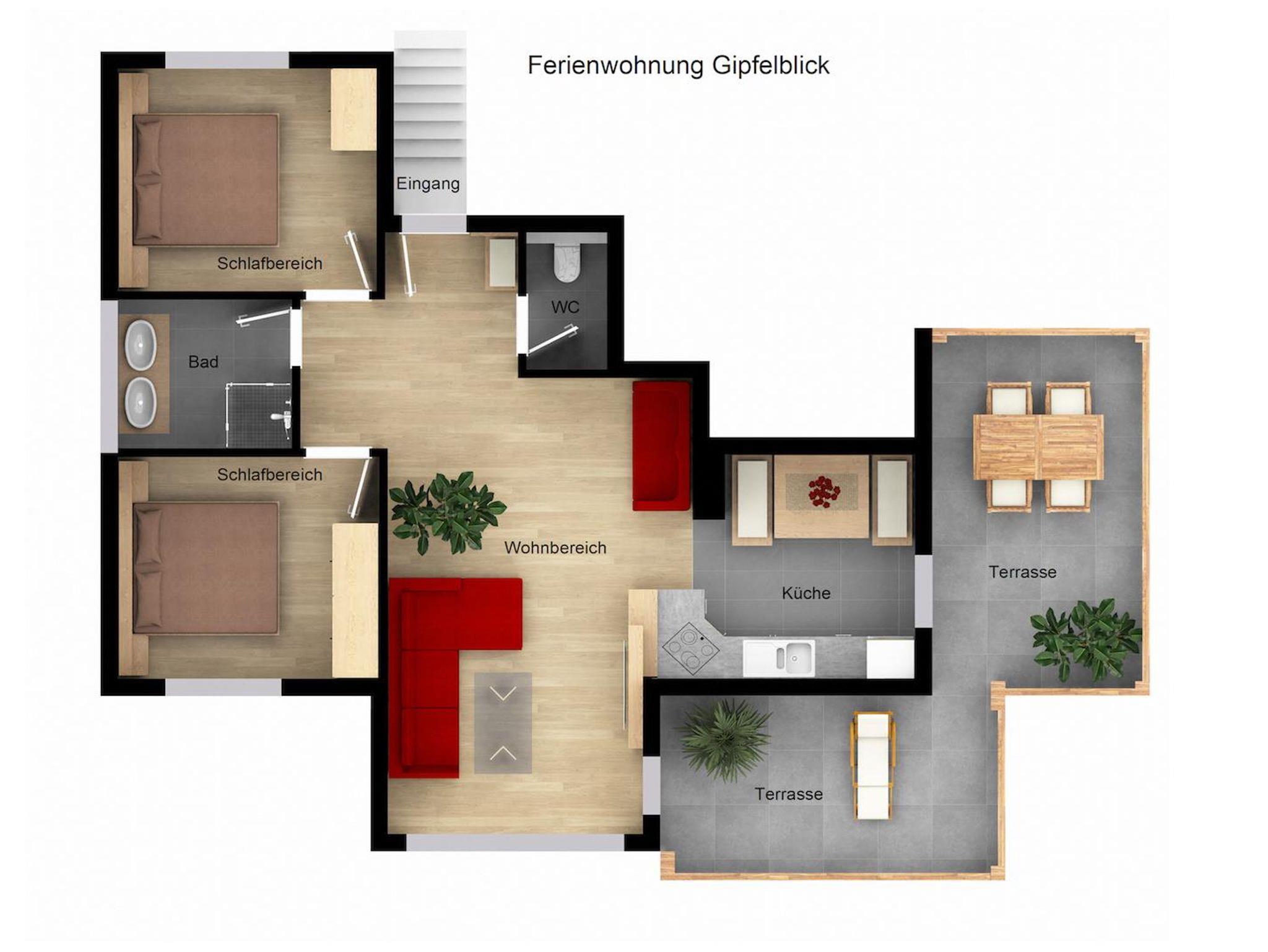 Ferienwohnung GIPFELBLICK im Obergeschoss für 4Personen mit Ost/Südterrasse