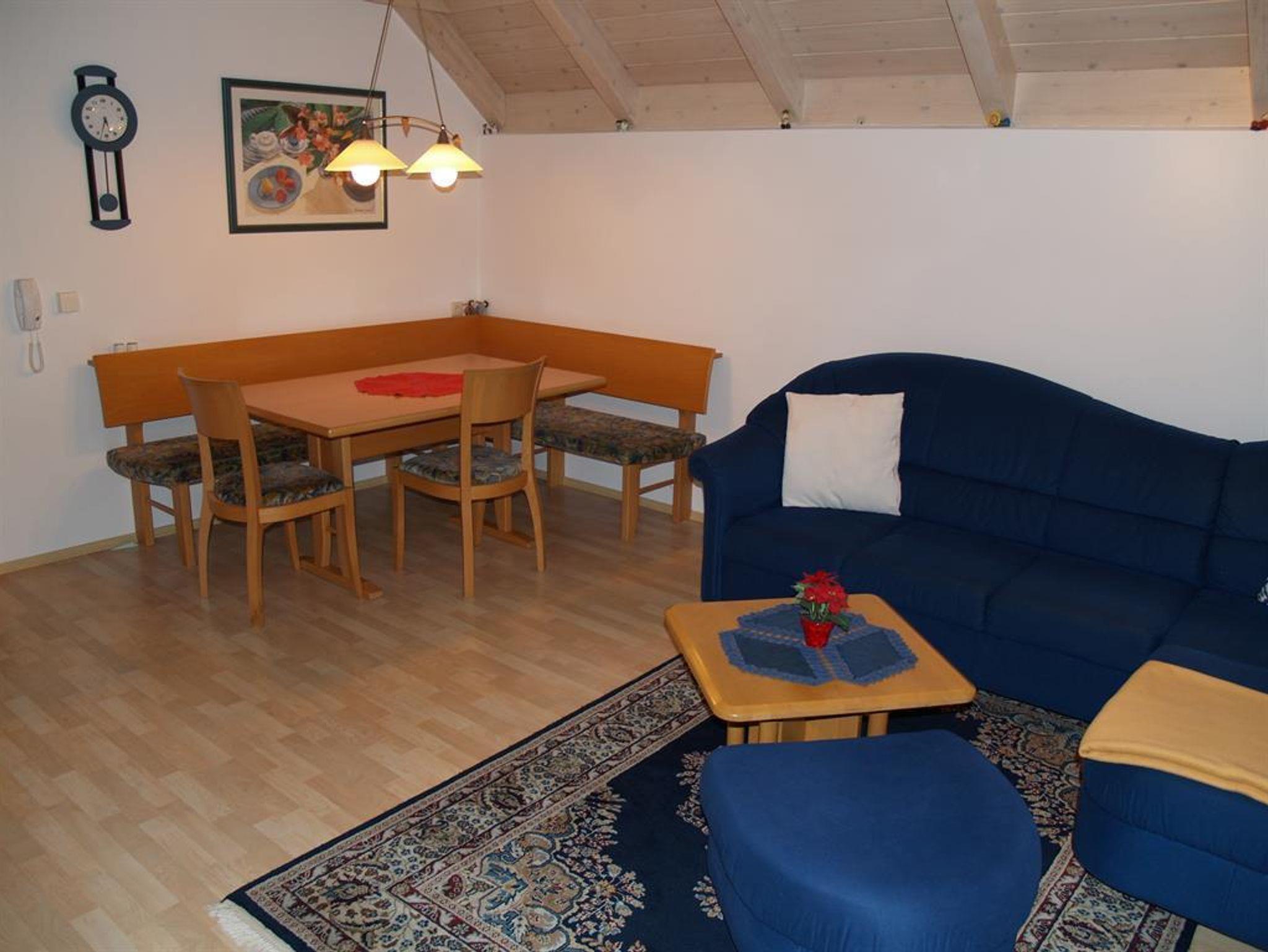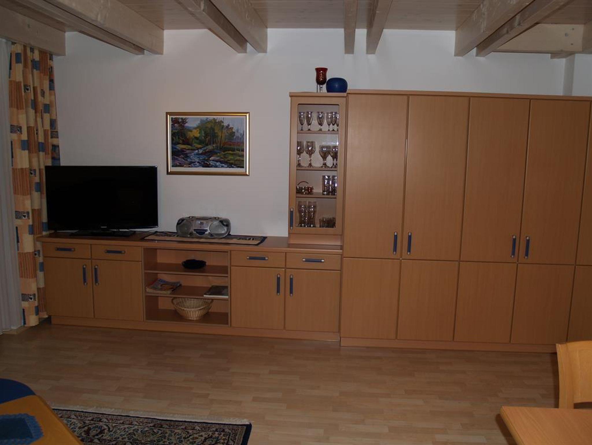 Wohnung 45 m² mit Südbalkon, Vorraum, Dusche-WC, Handtücher-Badetücher, Wohn-Küche mit Einbauherd, Microwellengerät, Dunstabzug, Geschirrspüler, Kühlautomat, Kaffeemaschine, Toaster, Wasserkocher, Essplatz für 3 Personen, 40 Zoll-Flachbild-Fernseher mit SAT-TV, Radio mit CD-Player, Internet-Anschluss, Schlafzimmer mit 3 Betten, Bettwäsche vorhanden.