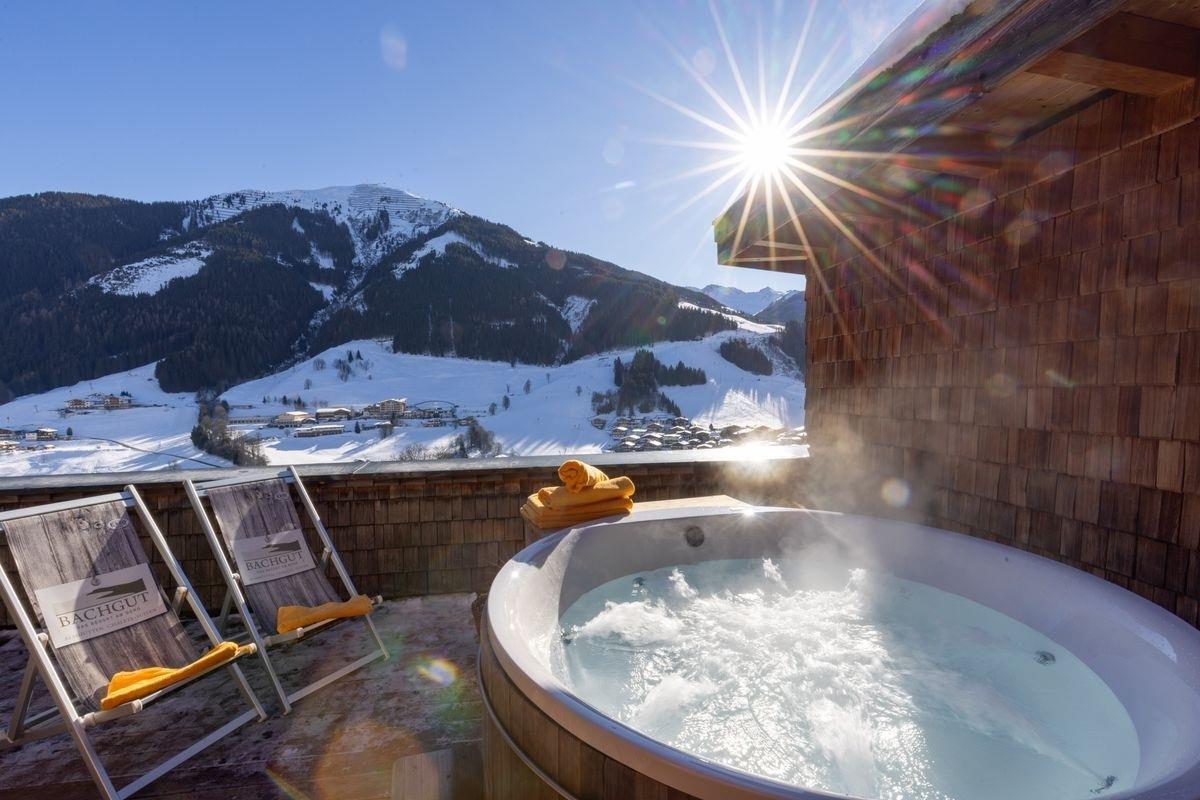 Exklusives Chalet in Saalbach-Hinterglemm – Luxusurlaub mit HotPot, Zirbenholz-Sauna & Ski in/Ski out für bis zu 12 Personen. Vier gemütliche Doppelzimmer, ein Familienzimmer, zwei moderne Bäder und eine großzügige Wohnstube mit Kachelofen bieten alpinen Komfort auf höchstem Niveau. Entspannen Sie in der Outdoor-Whirlwanne, am Schwimmteich oder im exklusiven Bachgut Badehaus mit Infinity Pool, Innen- und Kinderpool. Terrasse mit Grill, Skiraum mit Trockner und Brötchenservice runden Ihr alpines Wohlfühlerlebnis perfekt ab.