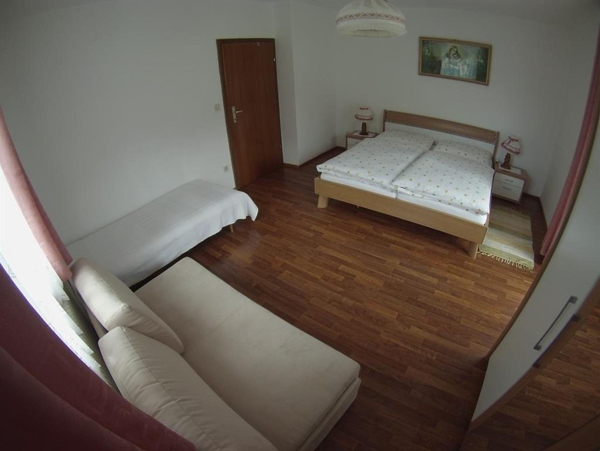 Die Ferienwohnung ist im 2. Stock mit Balkon. Das große Bad ist mit Badewanne und Dusche, sowie ein seperates WC. Die Wohnküche ist mit einer Kaffeemaschine, Geschirrspüler, Wasserkocher, Microwelle , E-Herd mit Backrohr usw. bestens ausgestattet. In der Wohnung befinden sich 2 Schlafzimmer, jeweils mit einem Doppelbett. Selbstverständlich steht auch ein Fernseher zur Verfügung.